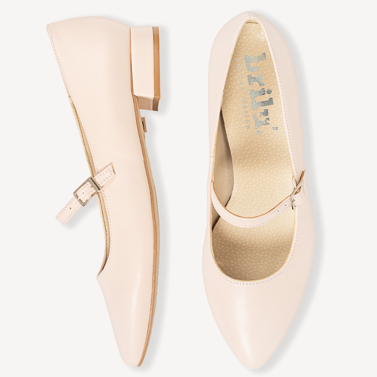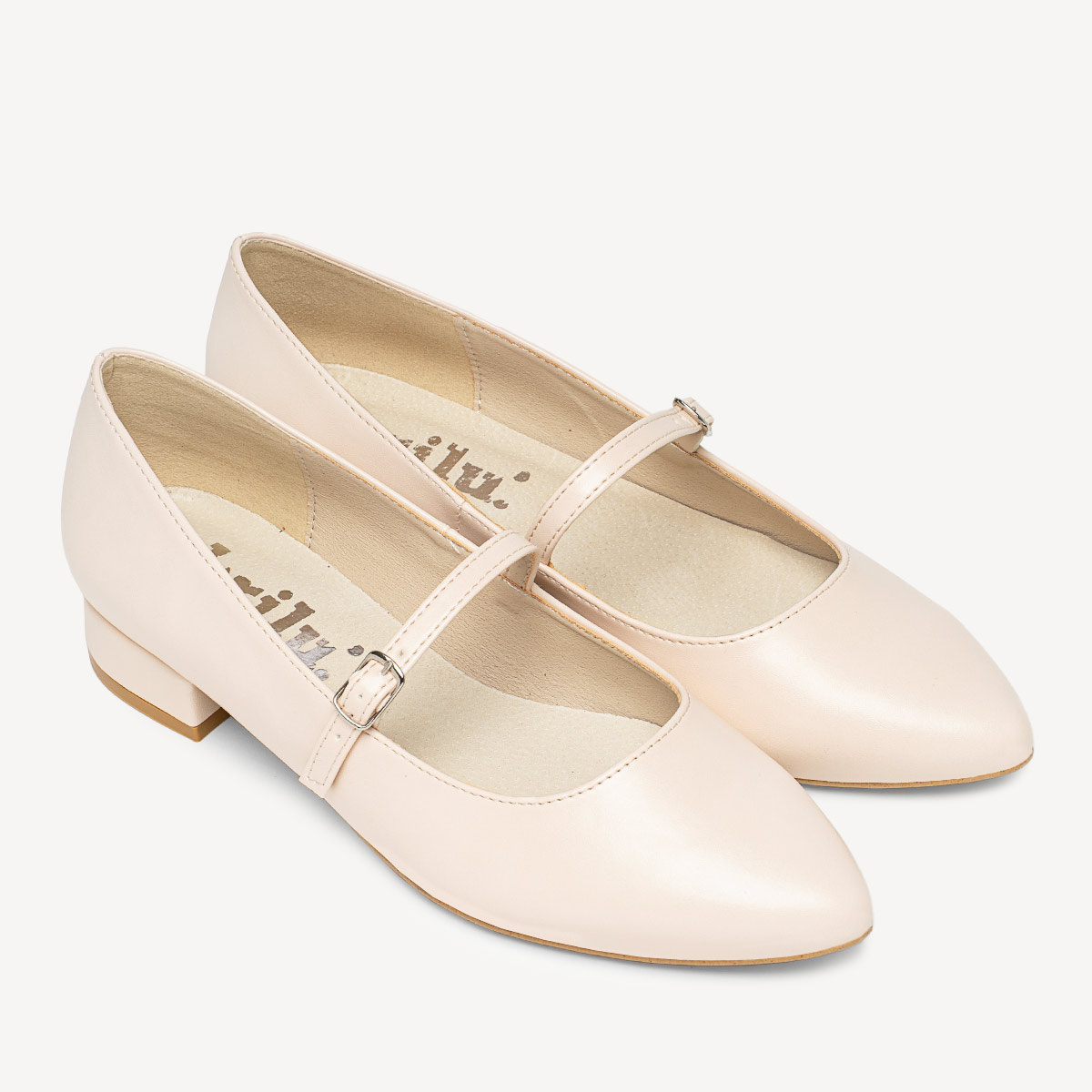 Ślubne balerinki na płaskim obcasie z paskiem Willow cieliste ecru