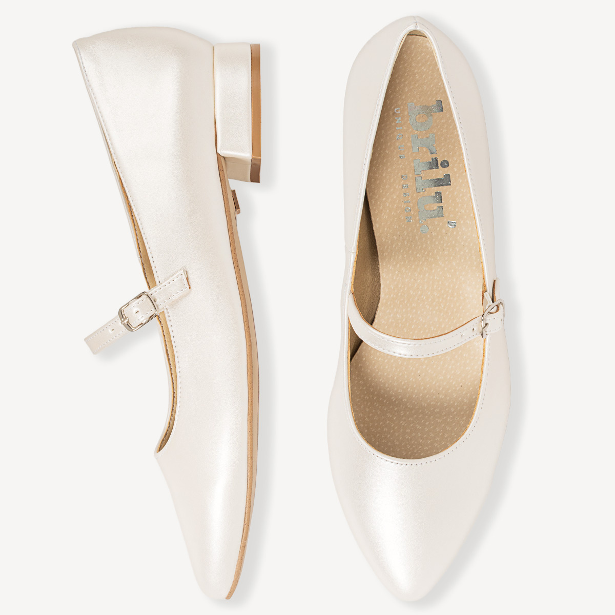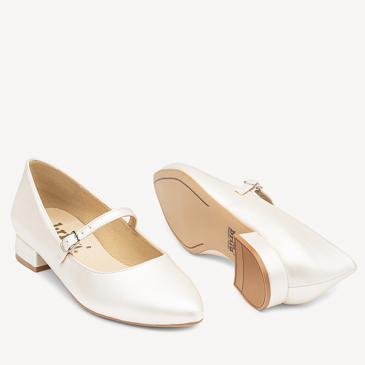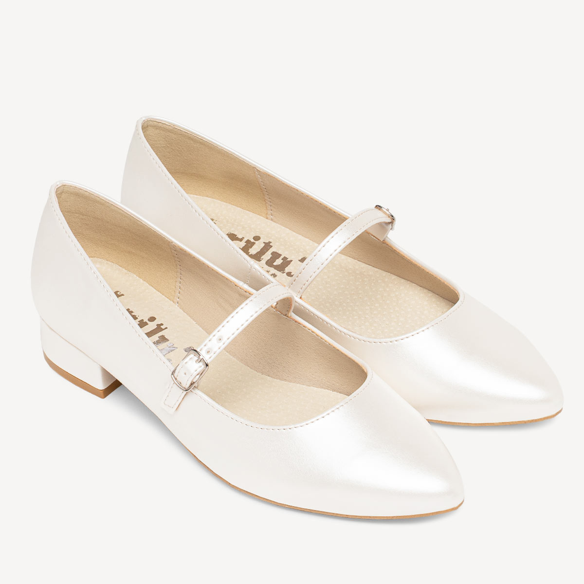 Ślubne perłowe balerinki na płaskim obcasie z paskiem Willow ivory