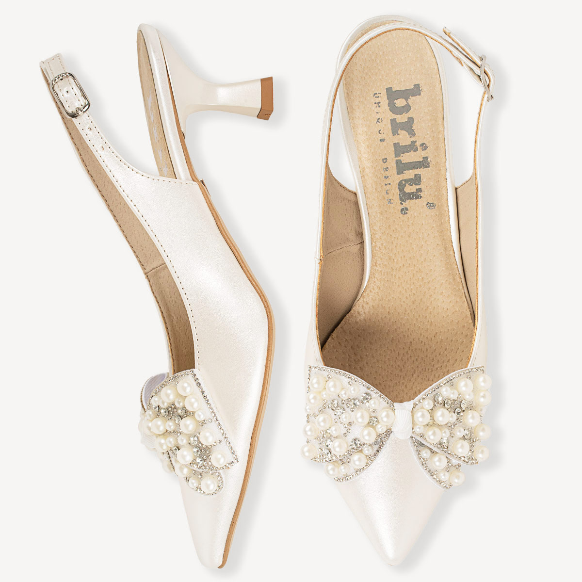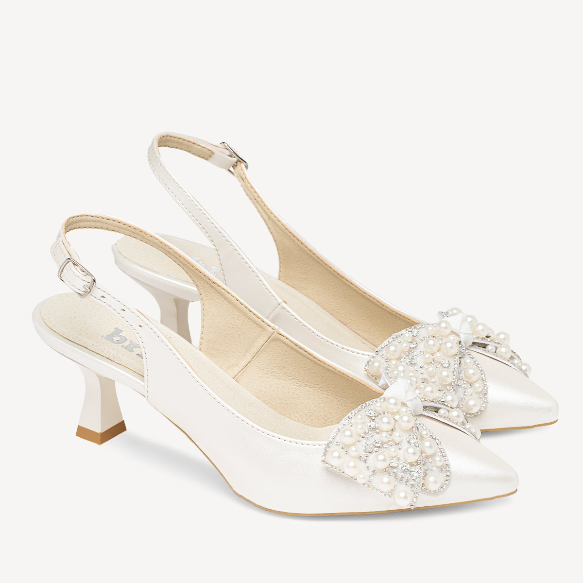 Ślubne perłowe szpilki bez pięty z ozdobną kokardą Alisia ivory