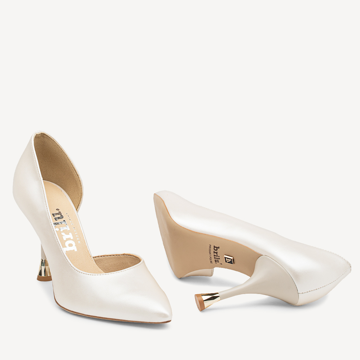 Luna to zjawiskowe ślubne szpilki, które zachwycają swoim wyjątkowym designem i wygodą użytkowania. Perfekcyjne połączenie klasyki i nowoczesności sprawia, że są one idealnym wyborem dla każdej panny młodej pragnącej wyglądać olśniewająco w dniu swojego ślubu. Ich asymetryczny fason oraz delikatne, perłowe detale dodają im niepowtarzalnego uroku, który przyciąga uwagę i podkreśla wyjątkowość każdej kreacji ślubnej.