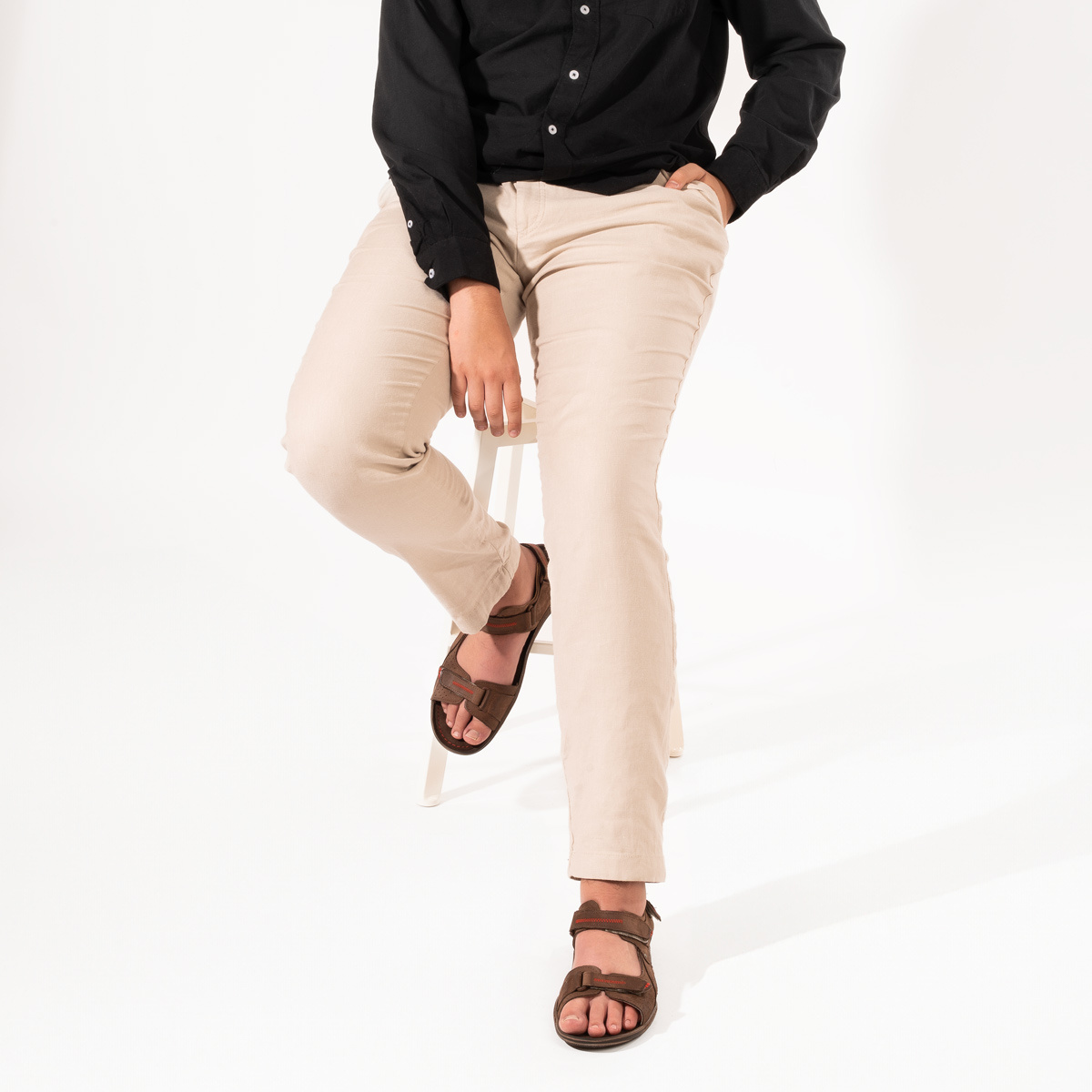 Męskie skórzane sandały zapinane na rzepy Leon brązowe