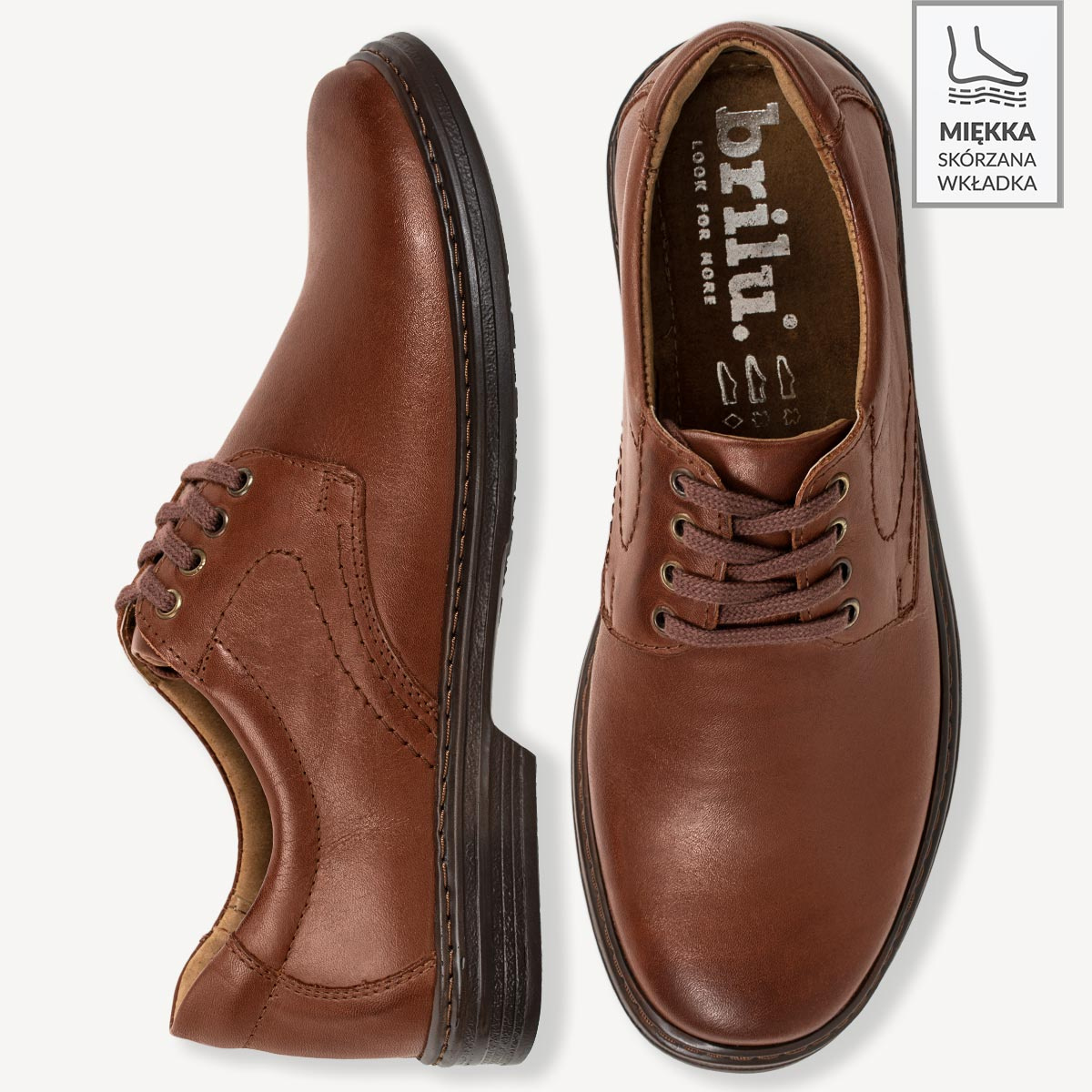 Męskie skórzane sznurowane półbuty Timothy brązowe