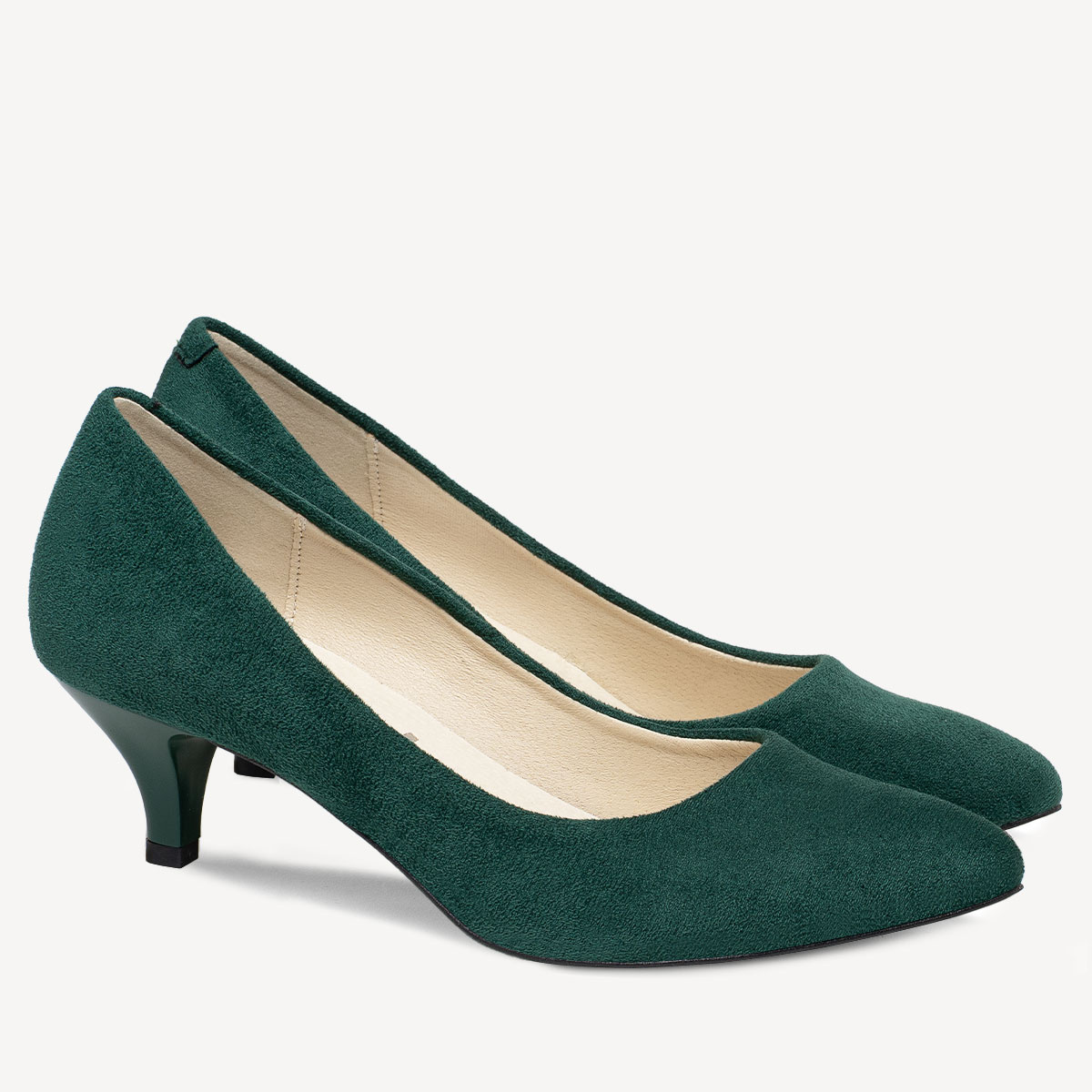 Klasyczne zamszowe szpilki na niskim obcasie Deliah w kolorze zielonym