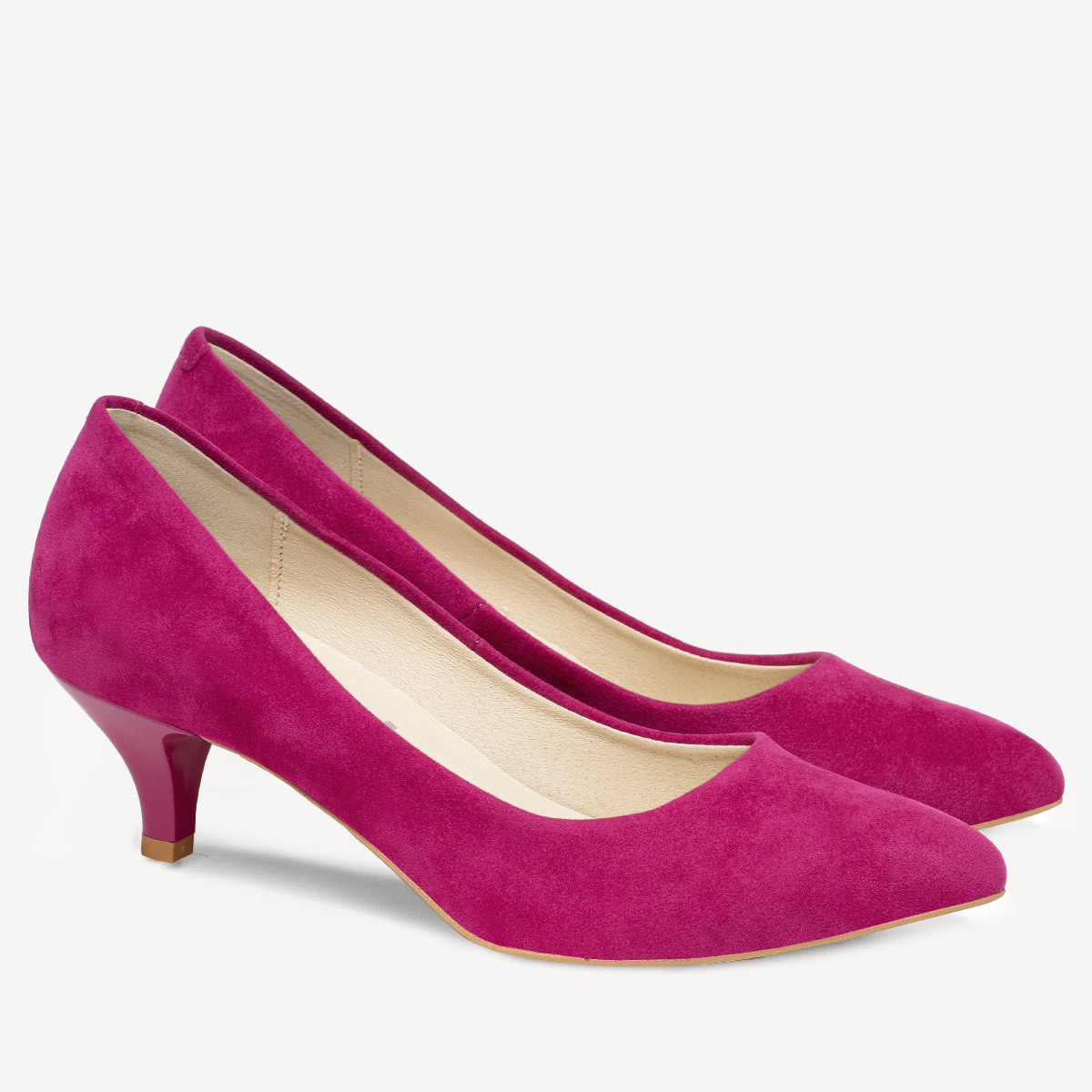 Klasyczne zamszowe szpilki na niskim obcasie Deliah fuksja