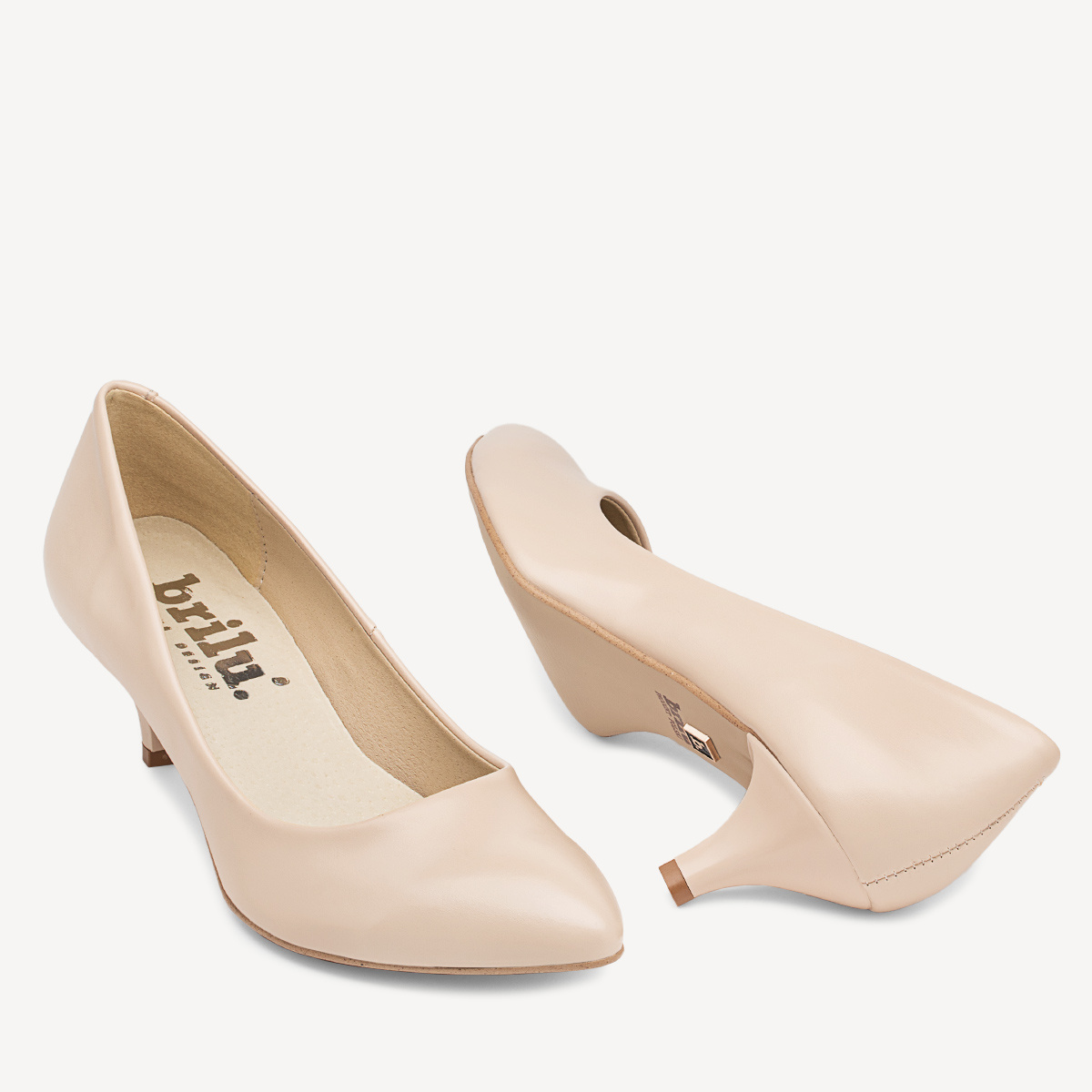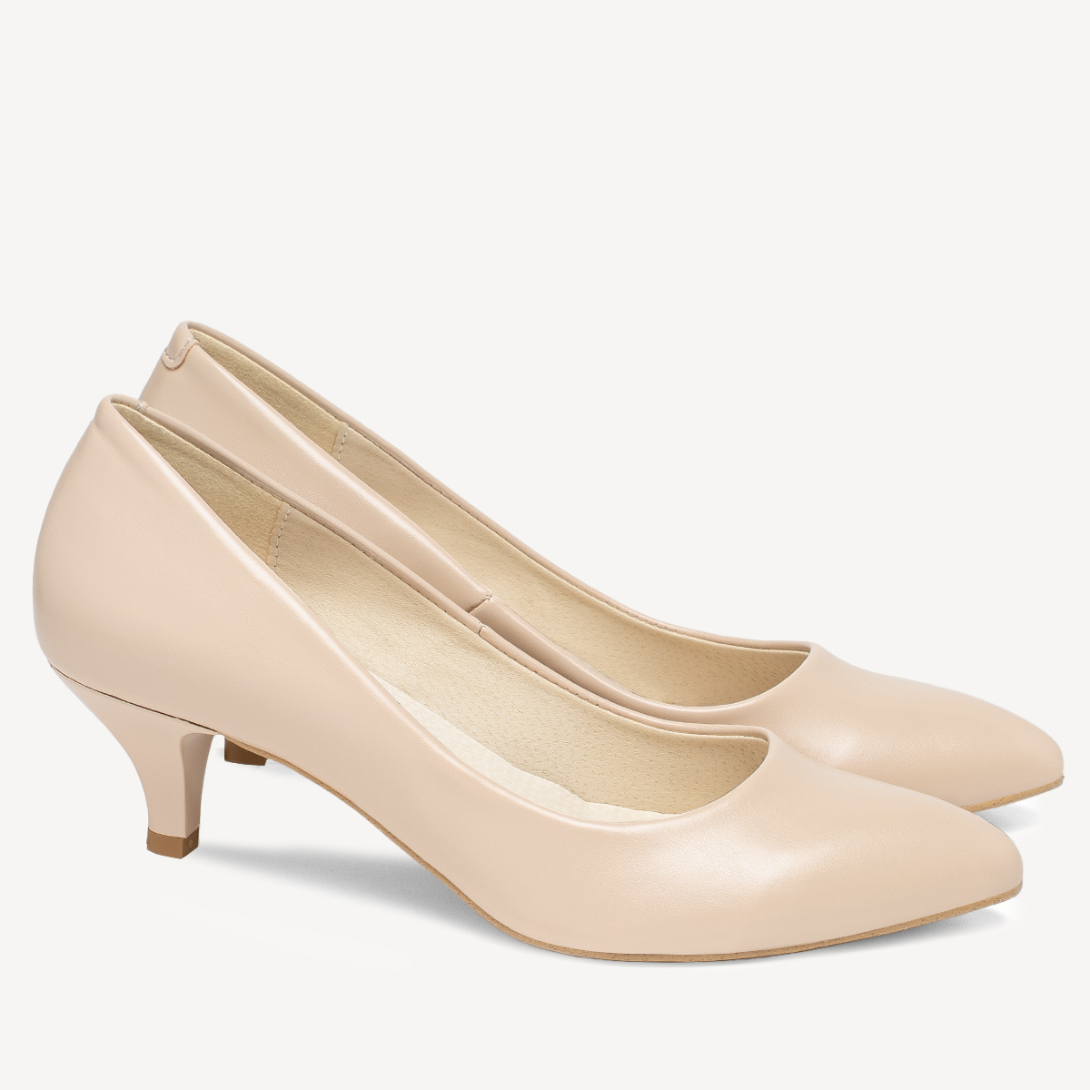 Klasyczne licowe szpilki na niskim obcasie Jenna beżowe
