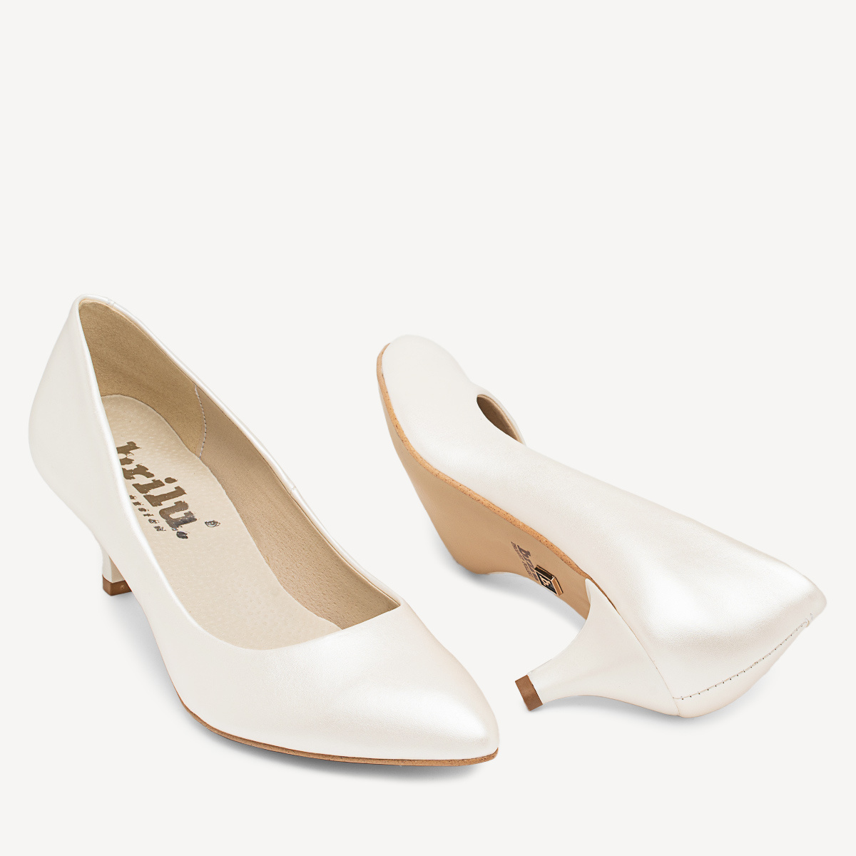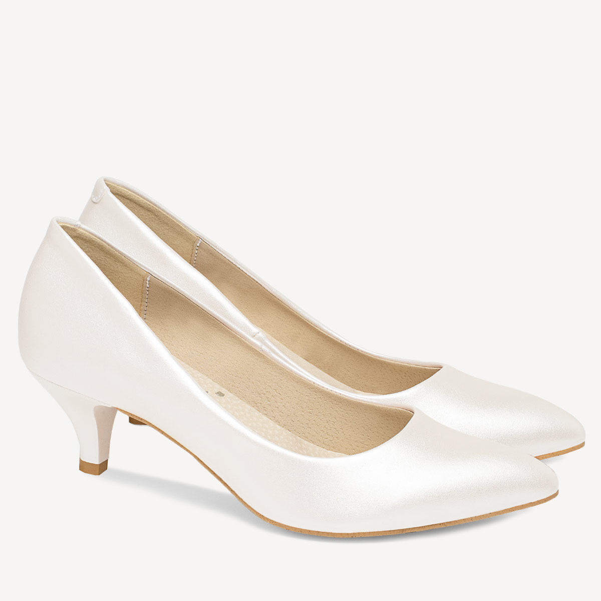 Ślubne perłowe szpilki na niskim obcasie Elodie ivory