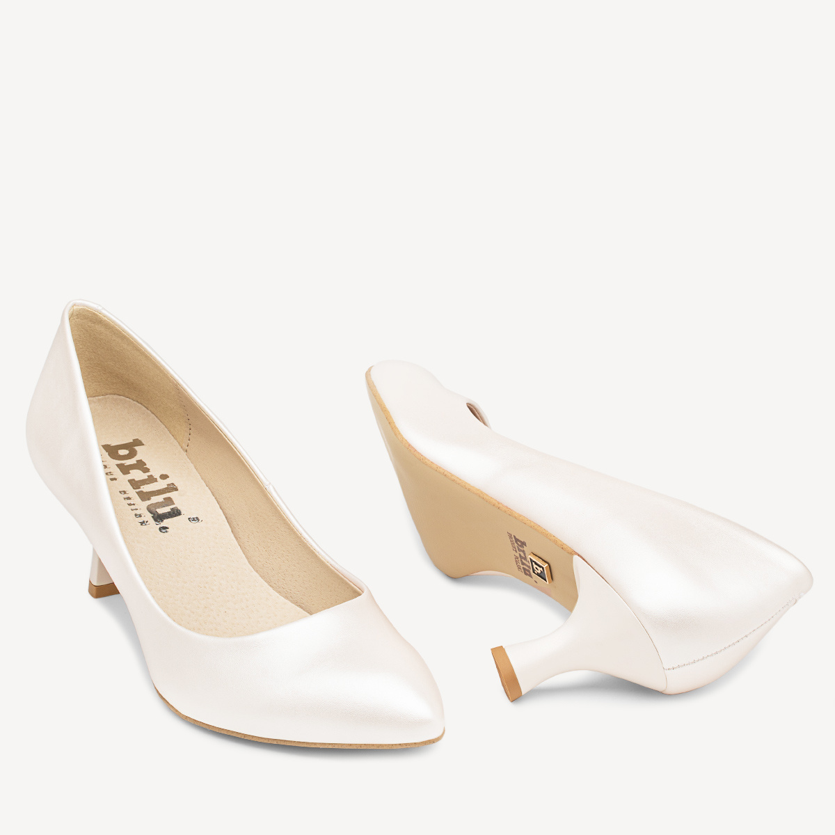 Ślubne perłowe szpilki na niskim obcasie Mirella ivory