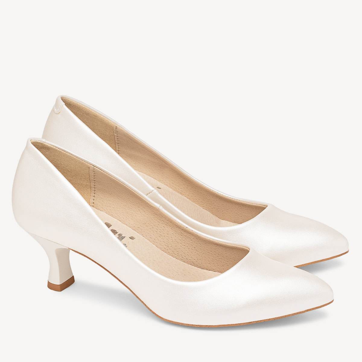 Ślubne perłowe szpilki na niskim obcasie Mirella ivory