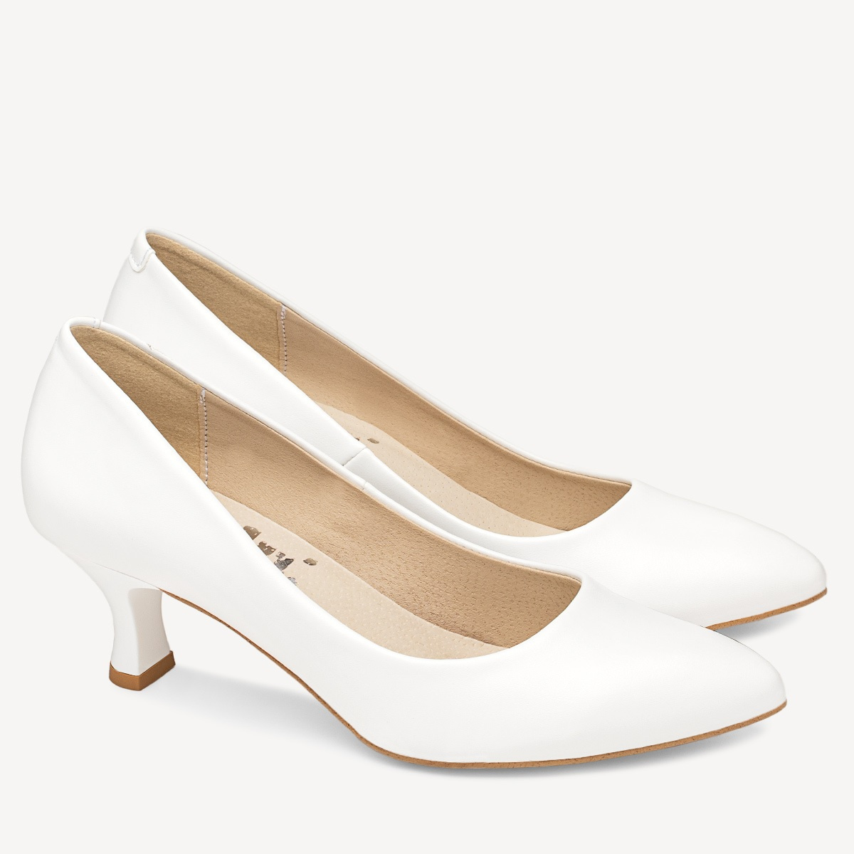 Ślubne klasyczne szpilki na niskim obcasie Mirella białe