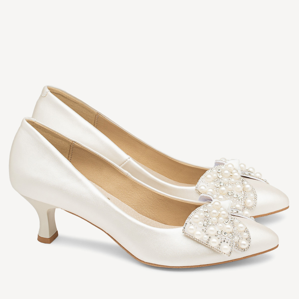 Ślubne perłowe szpilki z ozdobną kokardą Adeline ivory