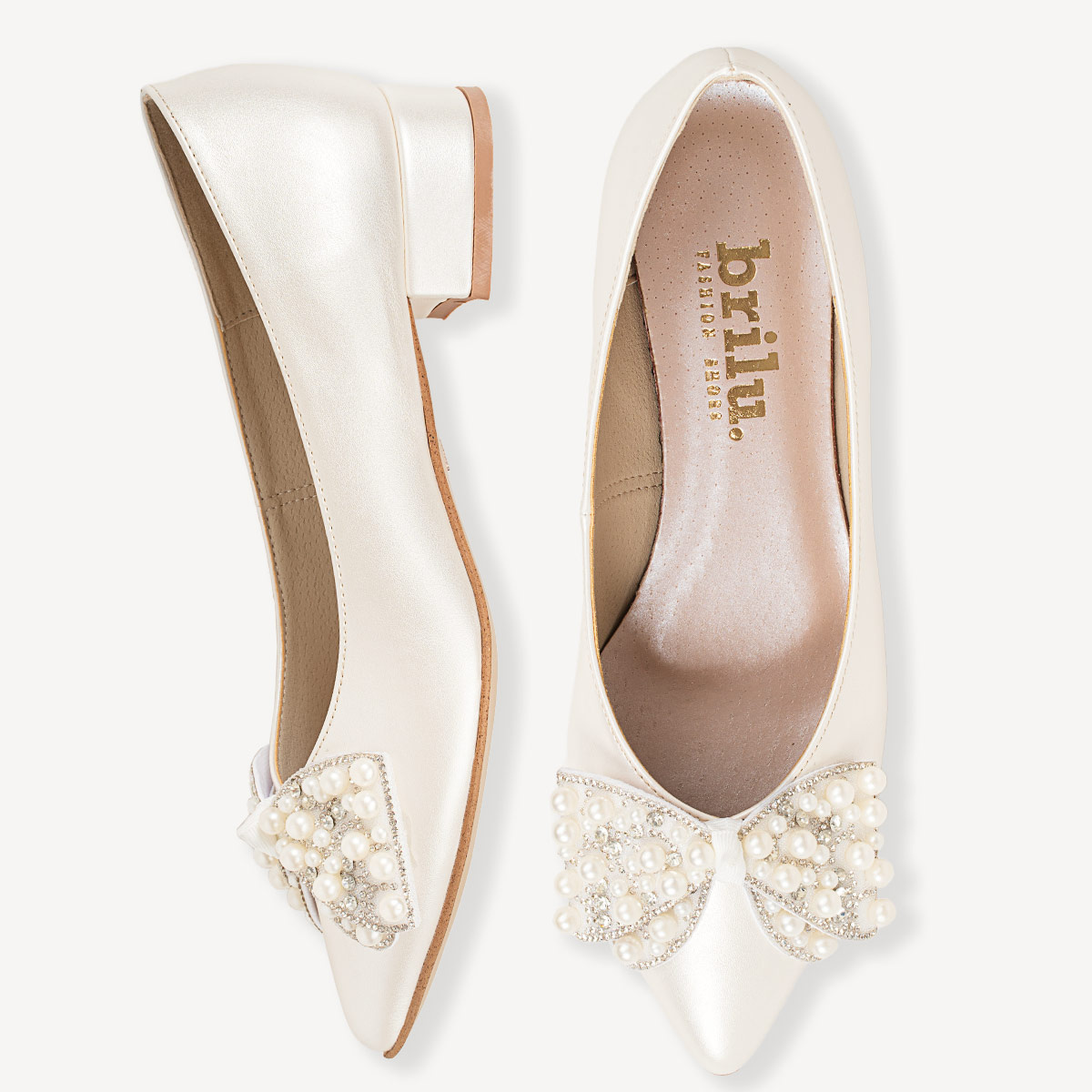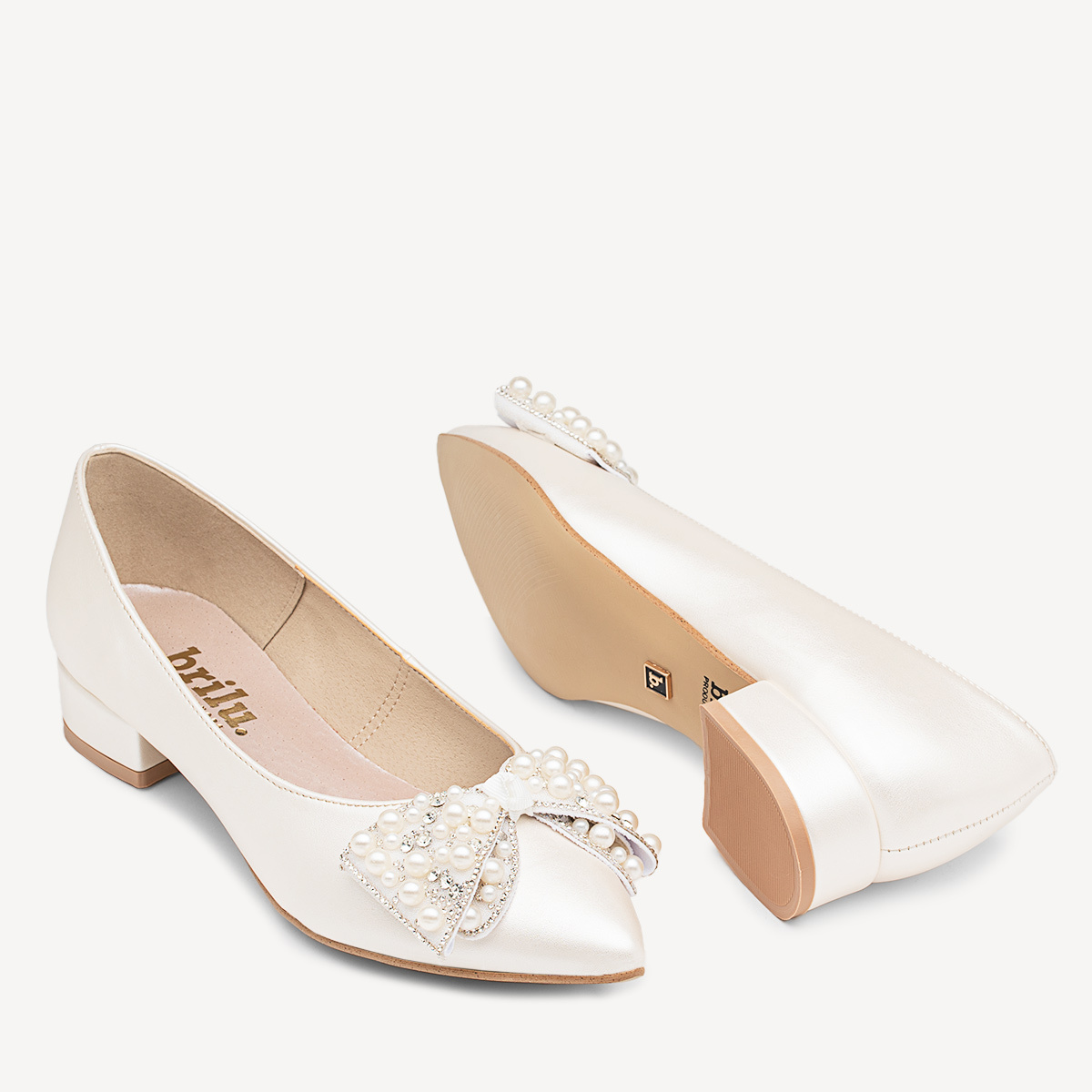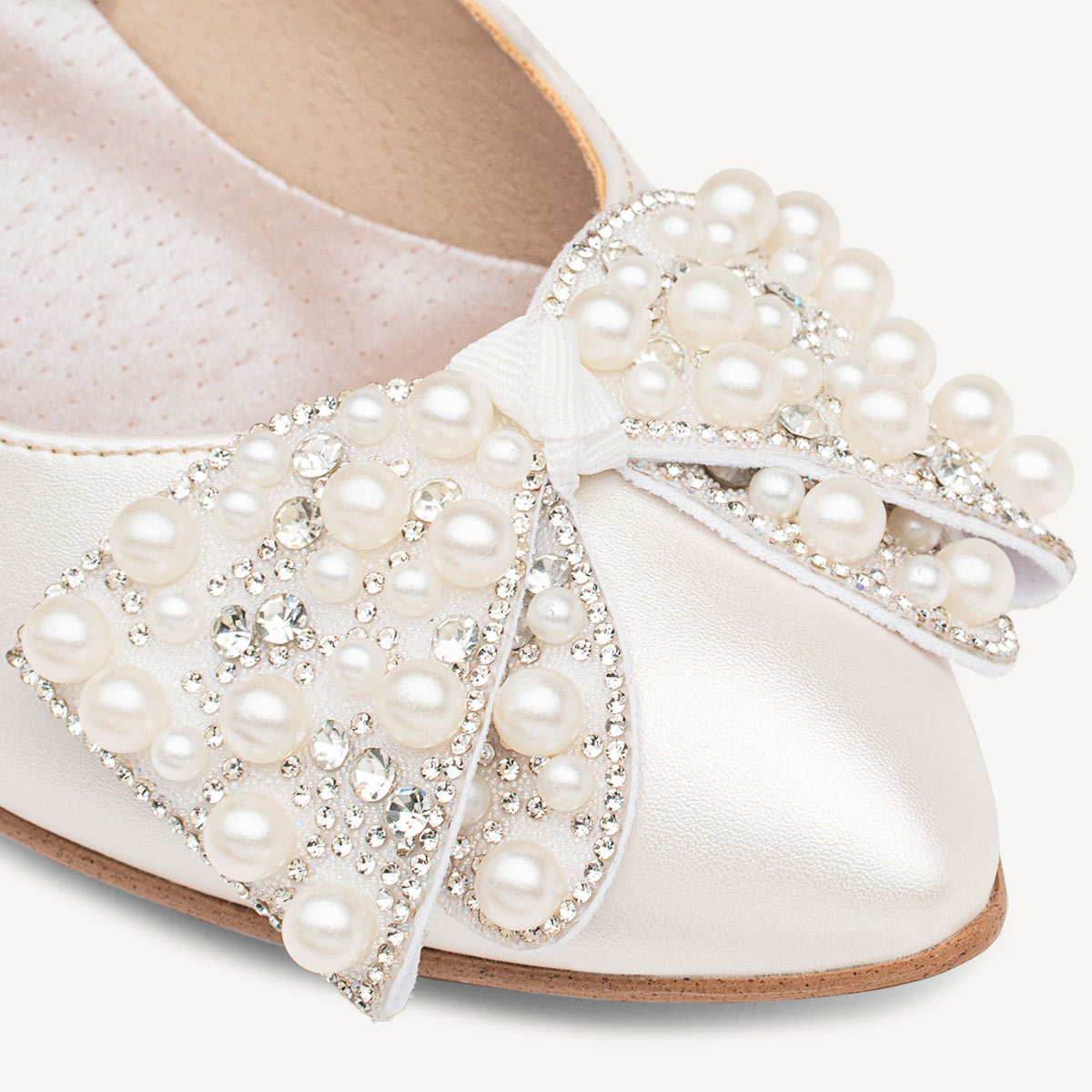 Ślubne perłowe balerinki z ozdobną kokardą Shelbi ivory