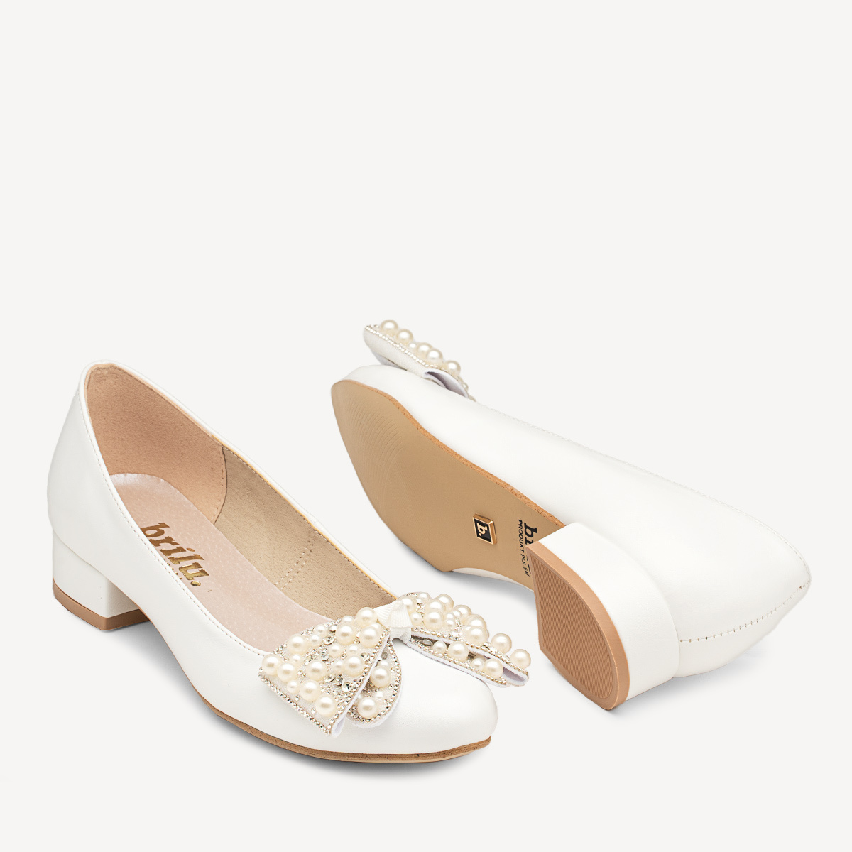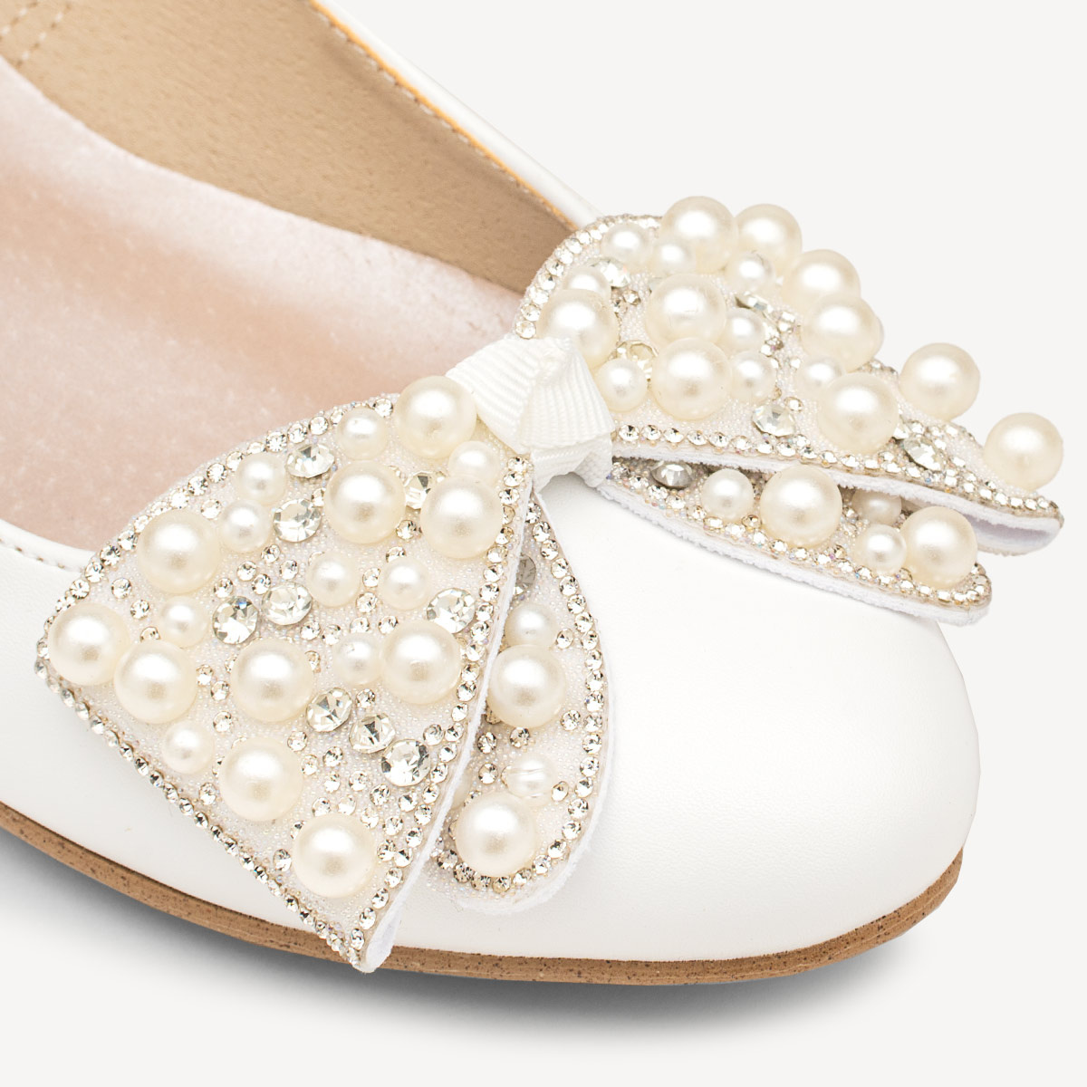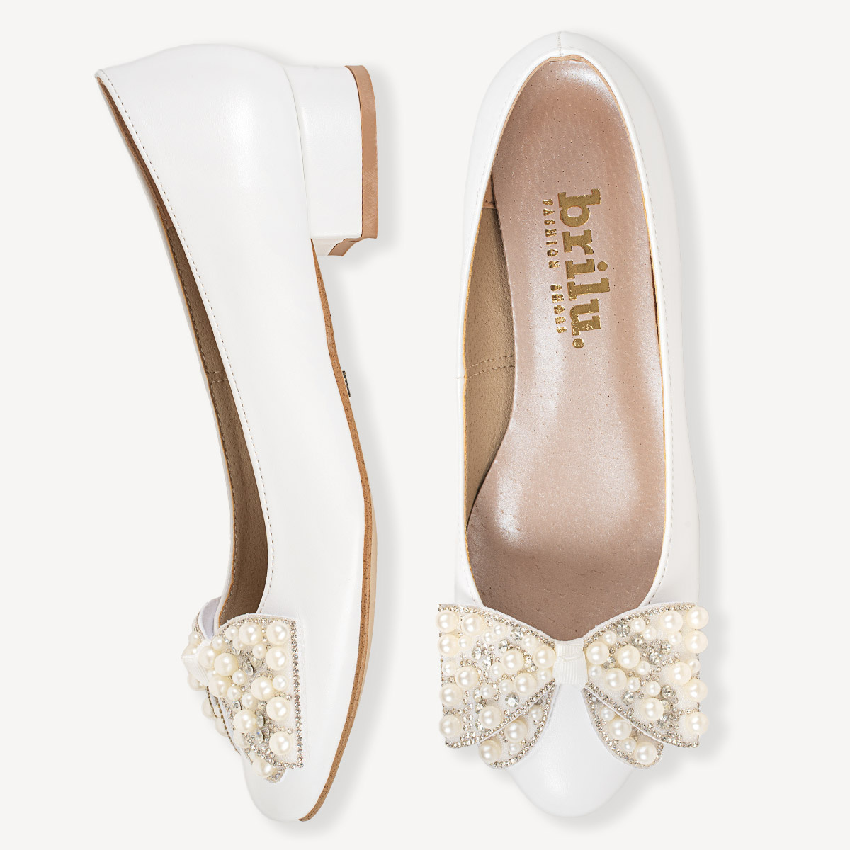 Ślubne balerinki z ozdobną kokardą Esther białe