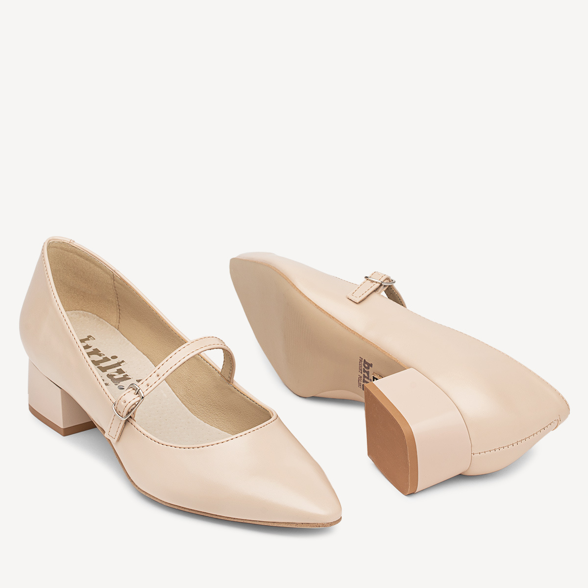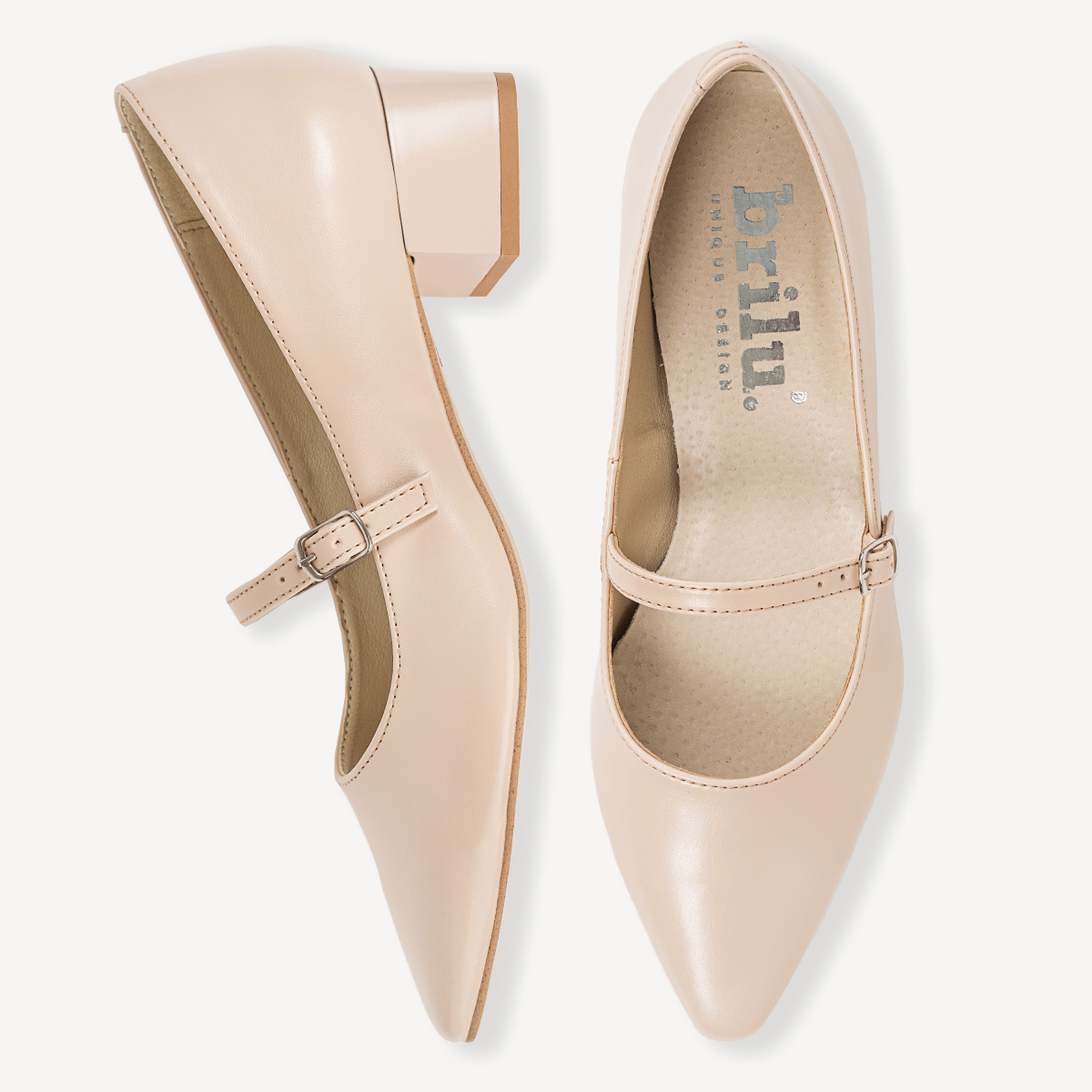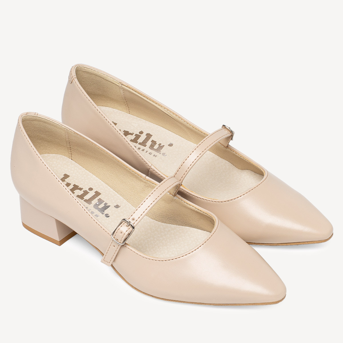 Eleganckie czółenka na niskim obcasie z paskiem Kiley beżowe