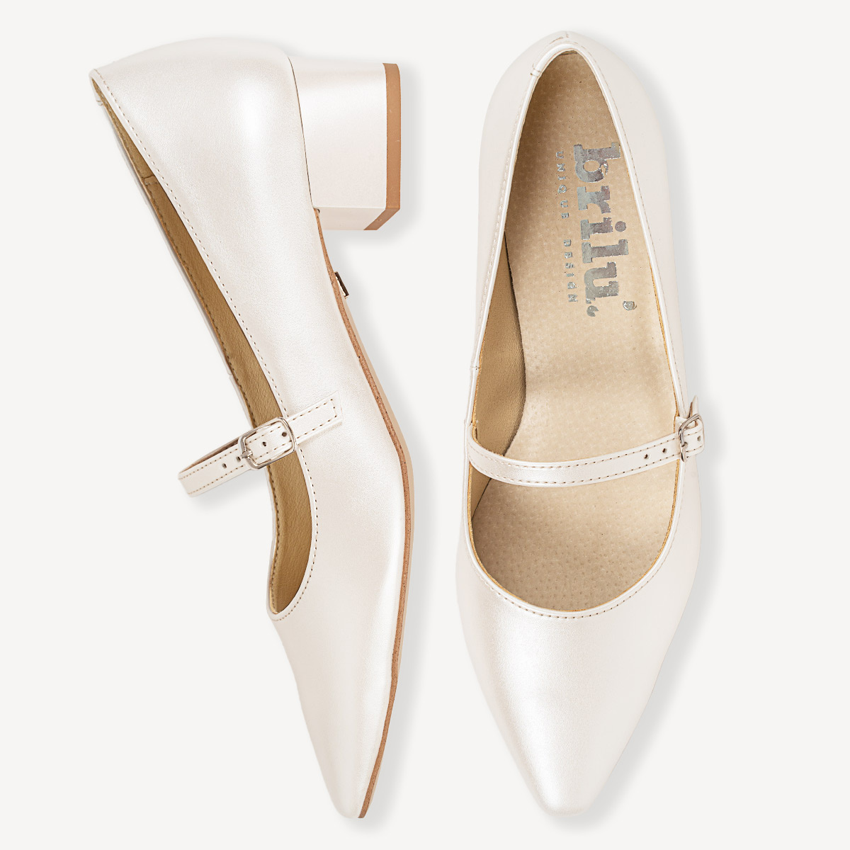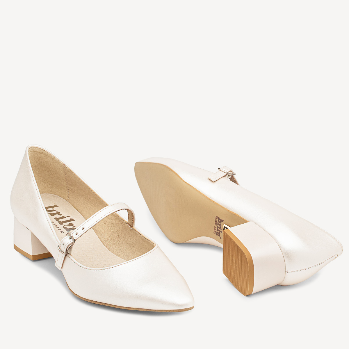 Ślubne perłowe czółenka na niskim obcasie z paskiem Saylor ivory