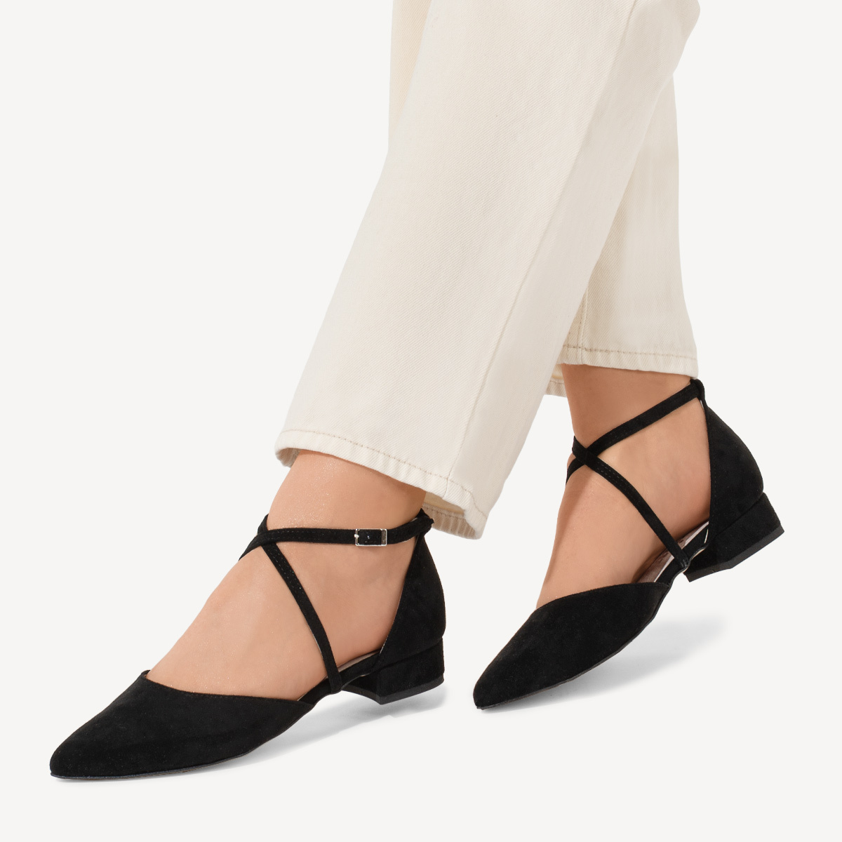 Zamszowe balerinki z paskami Cristina czarne