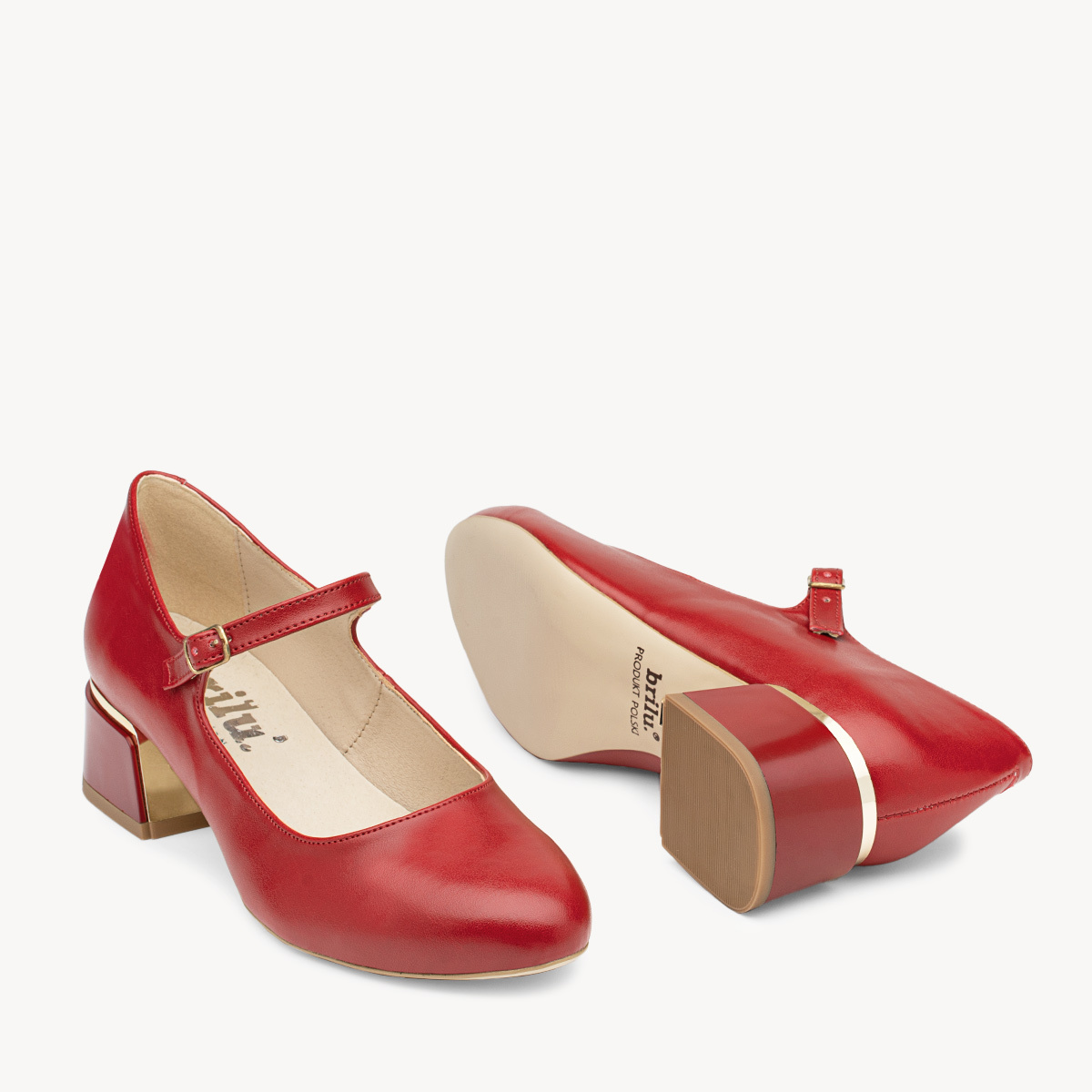 Eleganckie czółenka z ozdobnym obcasem Miya czerwone