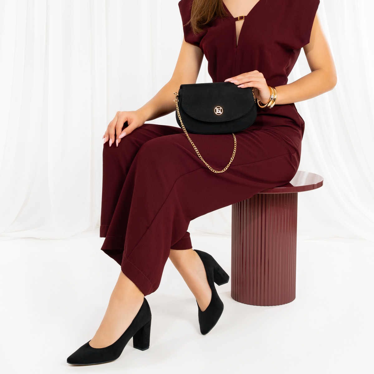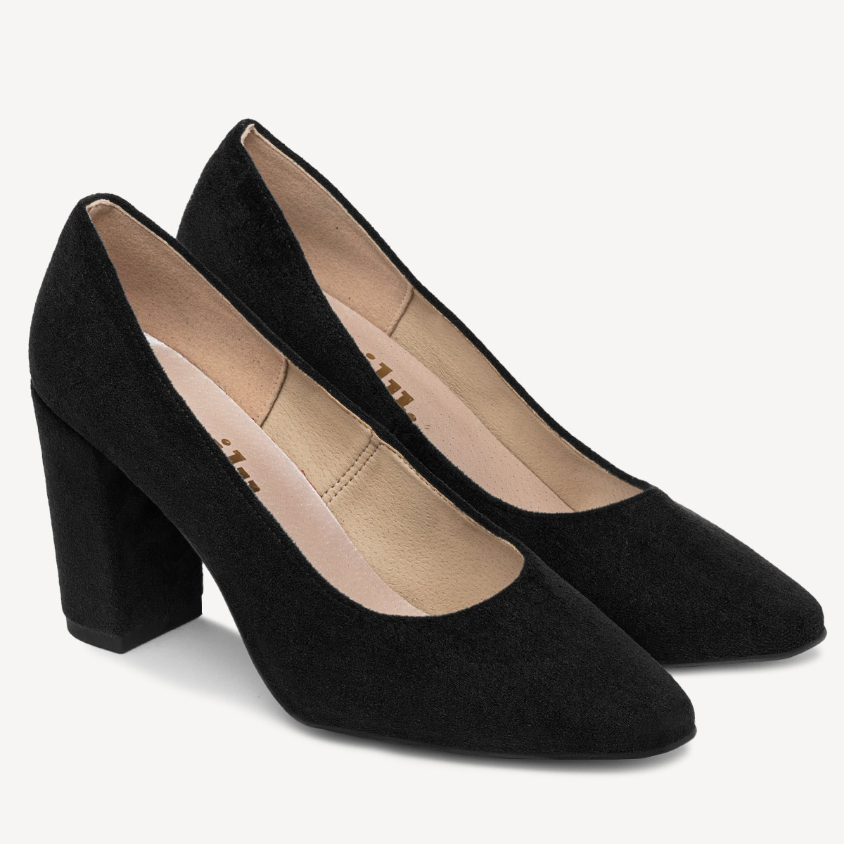 Zamszowe czółenka na słupku Valentine w kolorze czarnym