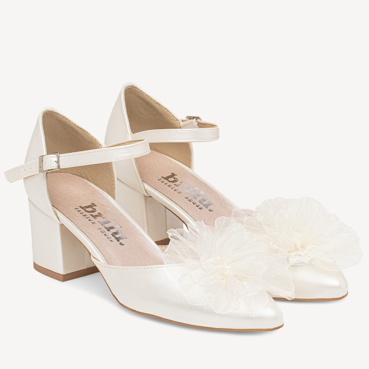 Ślubne perłowe czółenka z kwiatową ozdobą Estera ivory