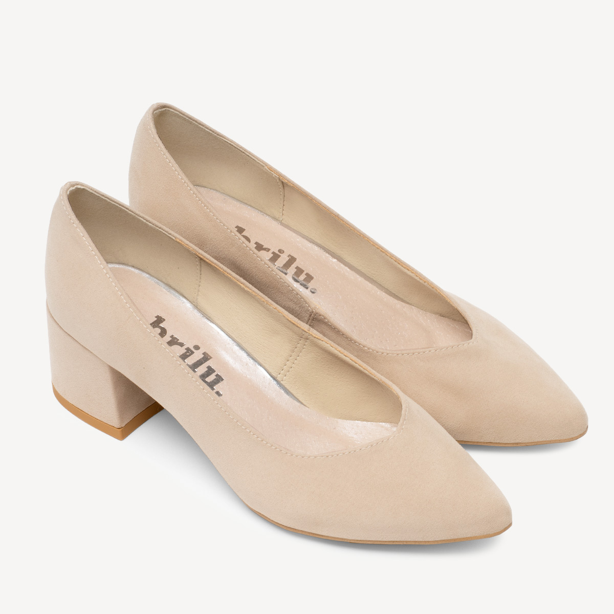 Eleganckie czółenka na klocku Rhonda w kolorze beżowym