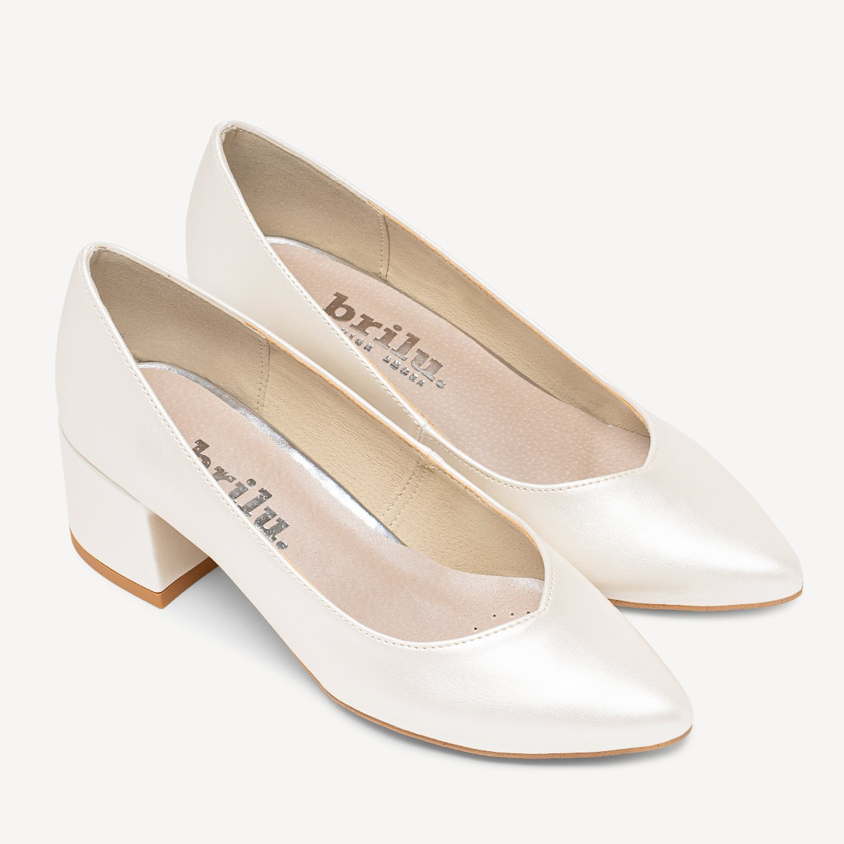 Ślubne czółenka Elara w odcieniu ivory to połączenie klasycznej elegancji z nowoczesnym wykończeniem. Perłowy połysk nadaje im delikatnego blasku, który doskonale podkreśla wyjątkowy charakter uroczystości. Minimalistyczny fason i stabilny obcas typu klocek czynią te czółenka idealnym wyborem dla Panien Młodych ceniących prostotę i funkcjonalność. To buty, które świetnie sprawdzą się zarówno podczas ceremonii, jak i na parkiecie weselnym.