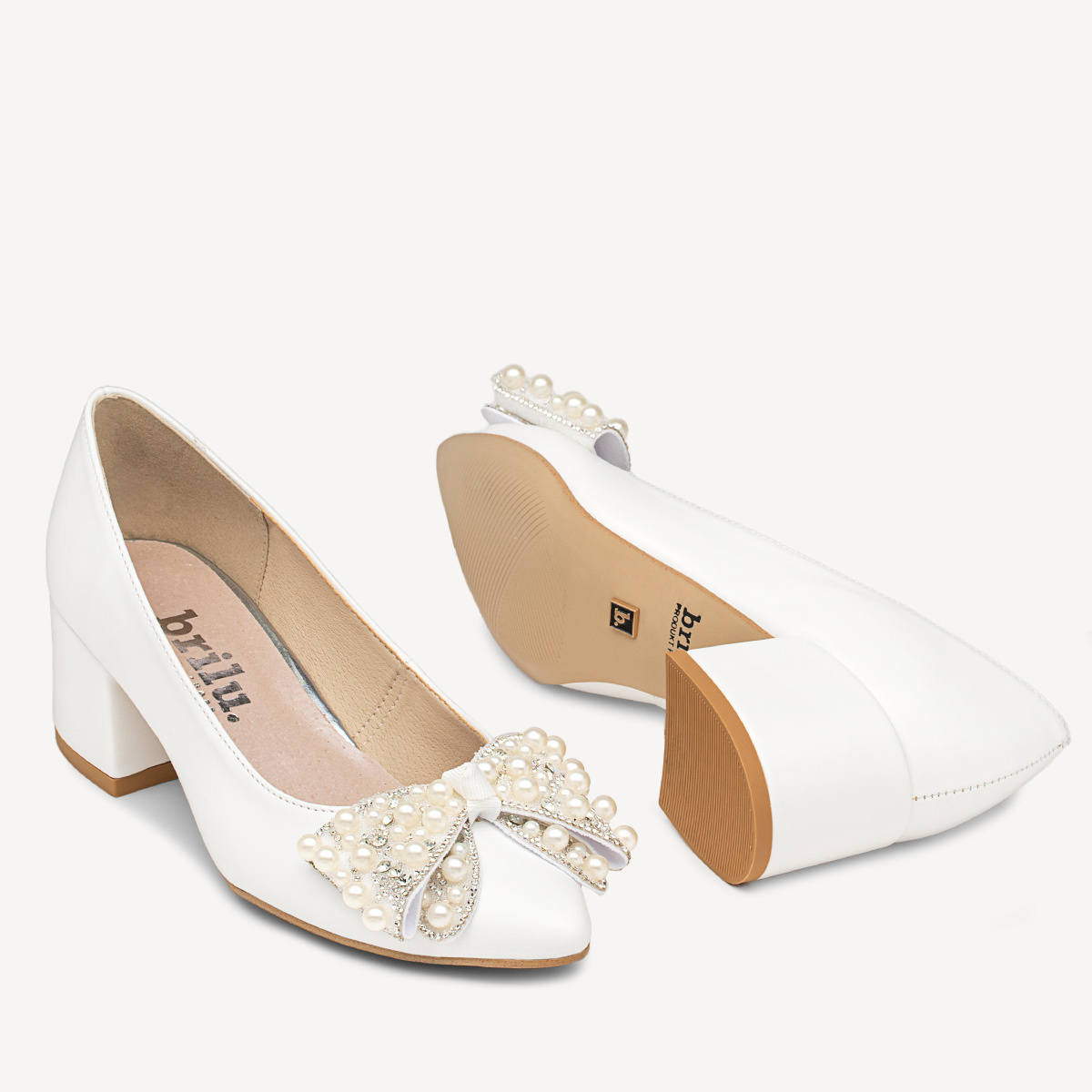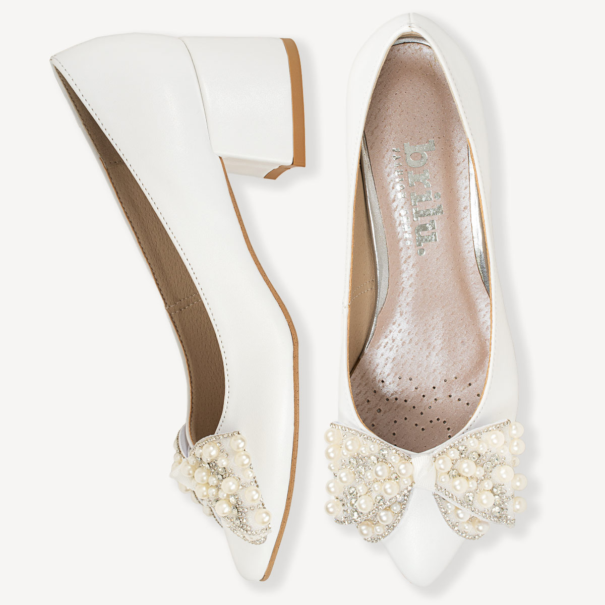 Ślubne czółenka z ozdobną kokardą Coralie białe