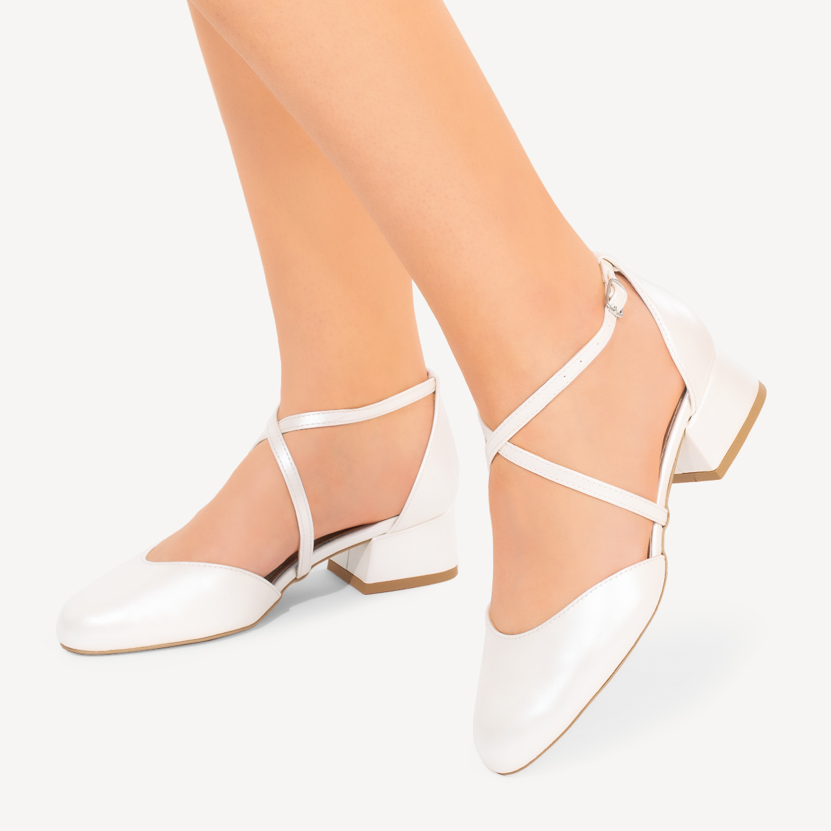 Ślubne perłowe czółenka z paskami Elisa ivory