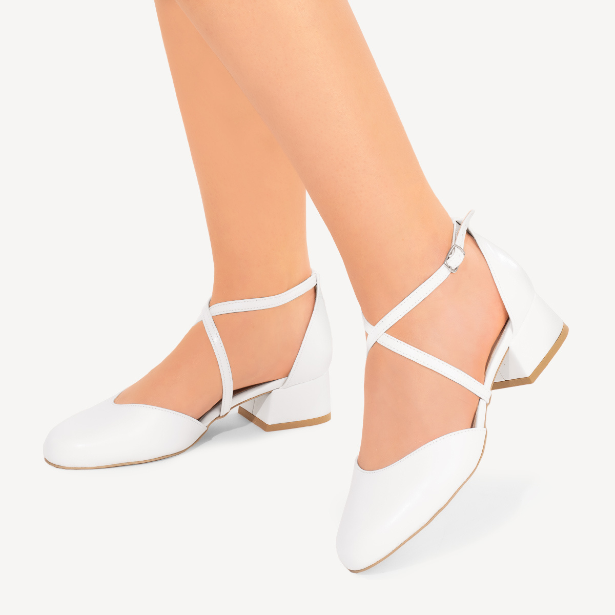 Ślubne eleganckie czółenka z paskami Elisa białe