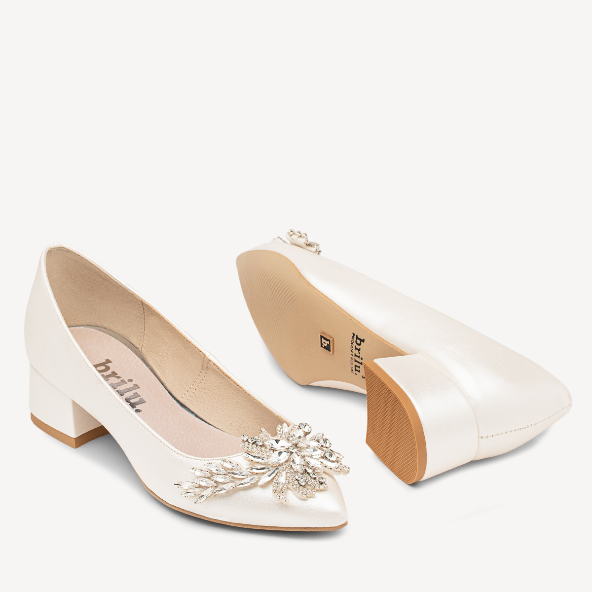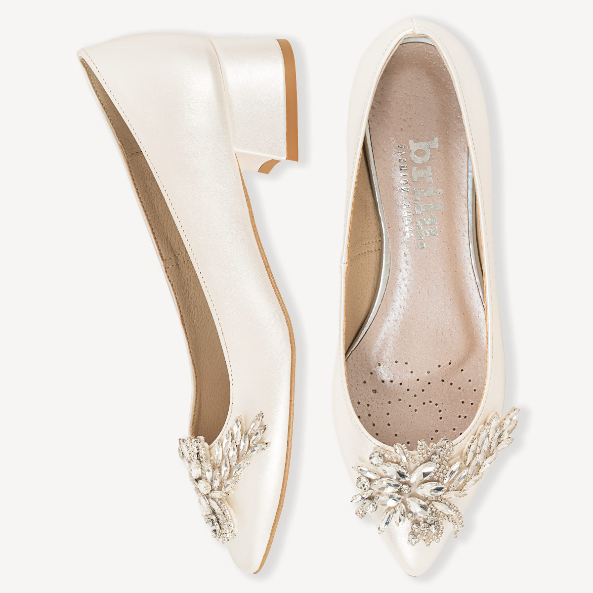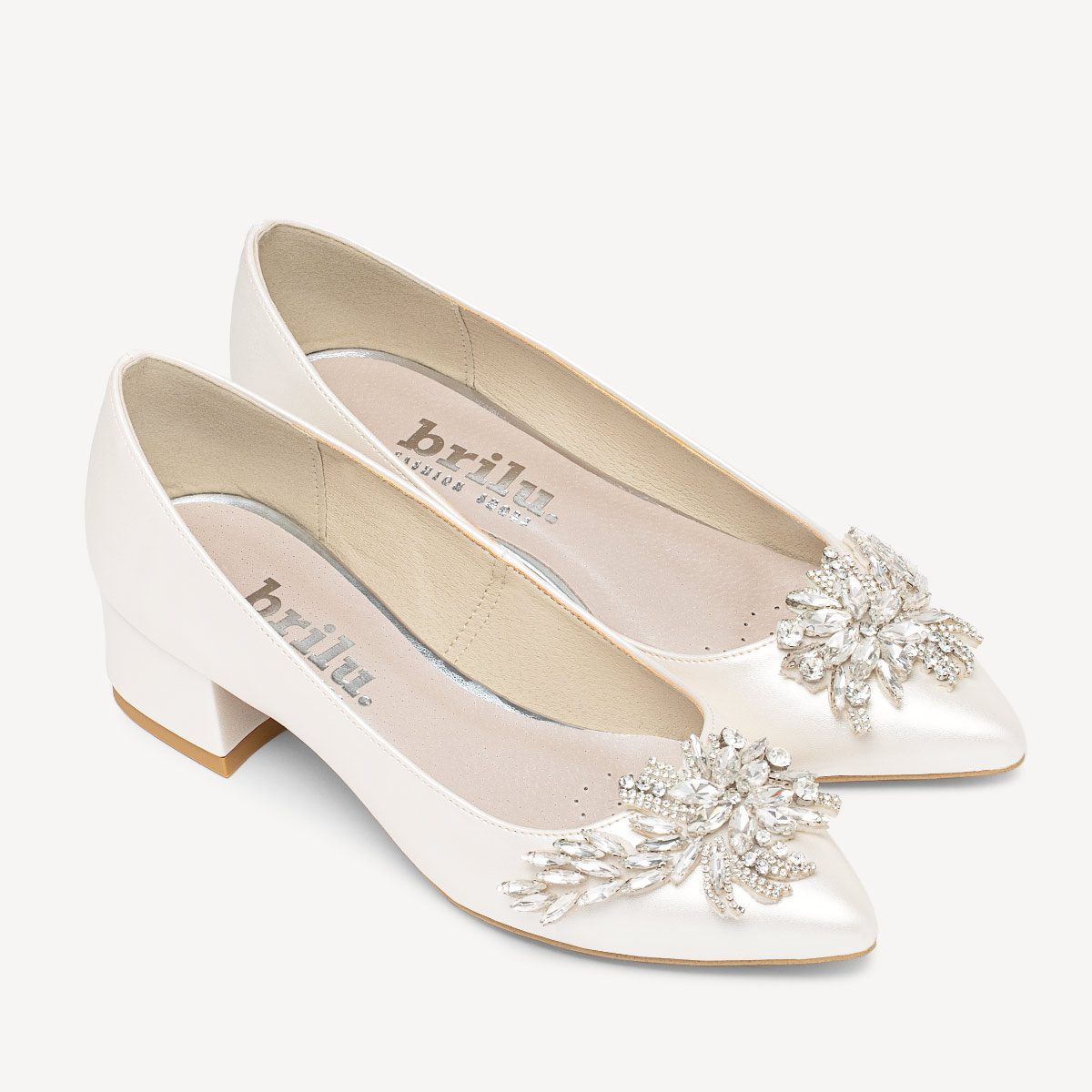 Ślubne perłowe czółenka z kryształową ozdobą Cersey ivory