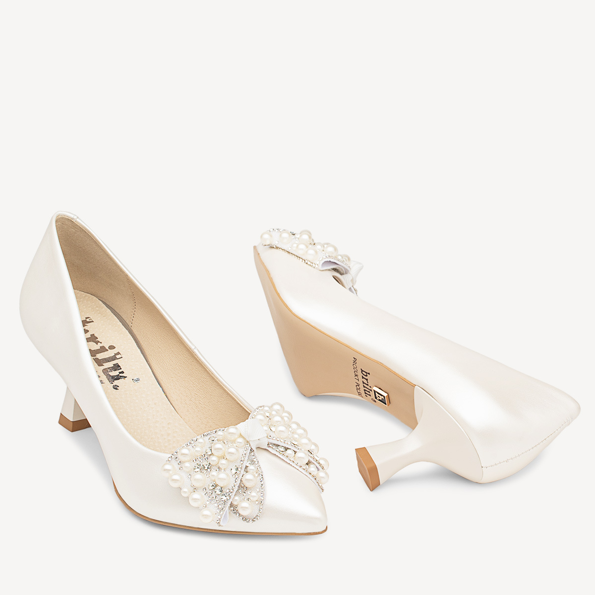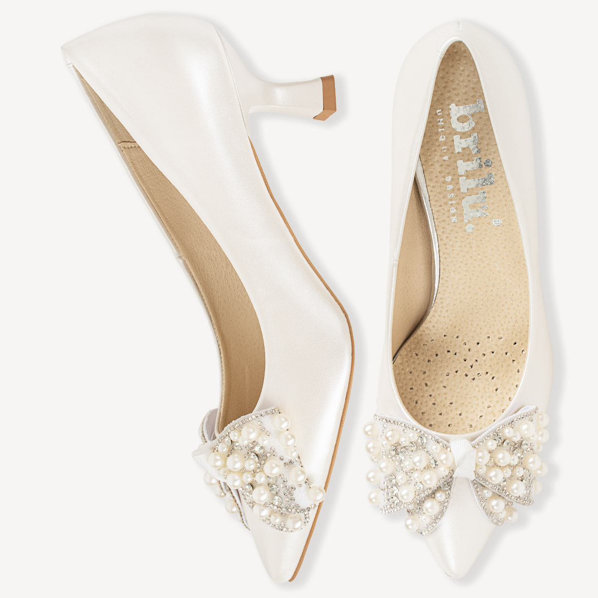 Ślubne perłowe szpilki z ozdobną kokardą Aryane ivory