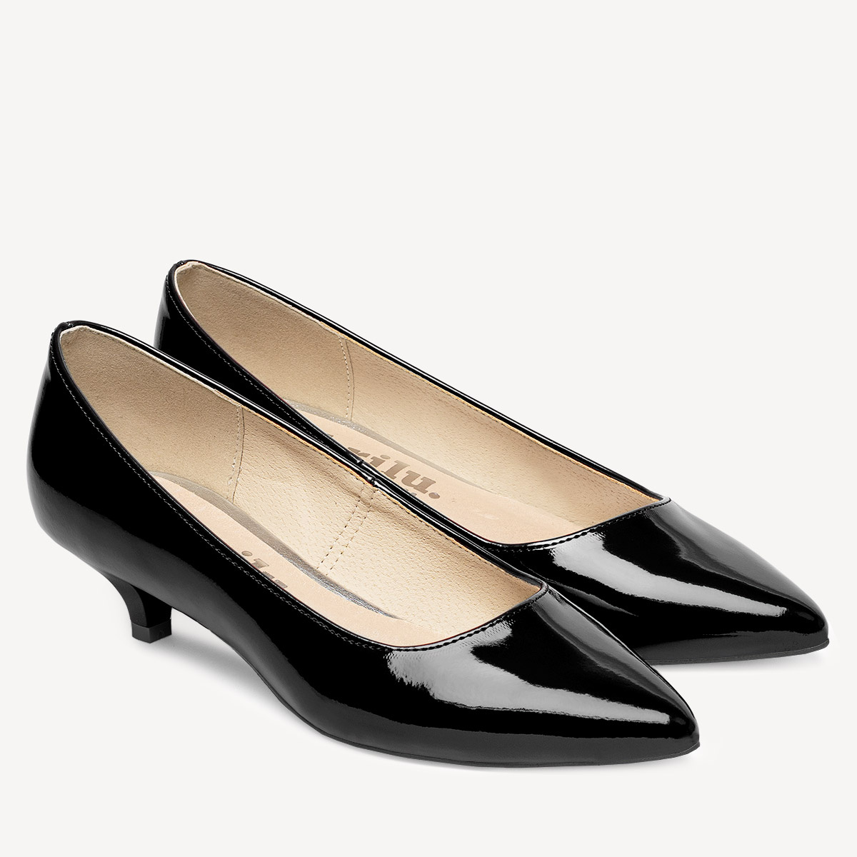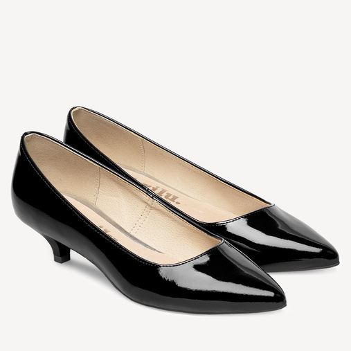 Klasyczne lakierowane szpilki na niskim obcasie Paloma czarne