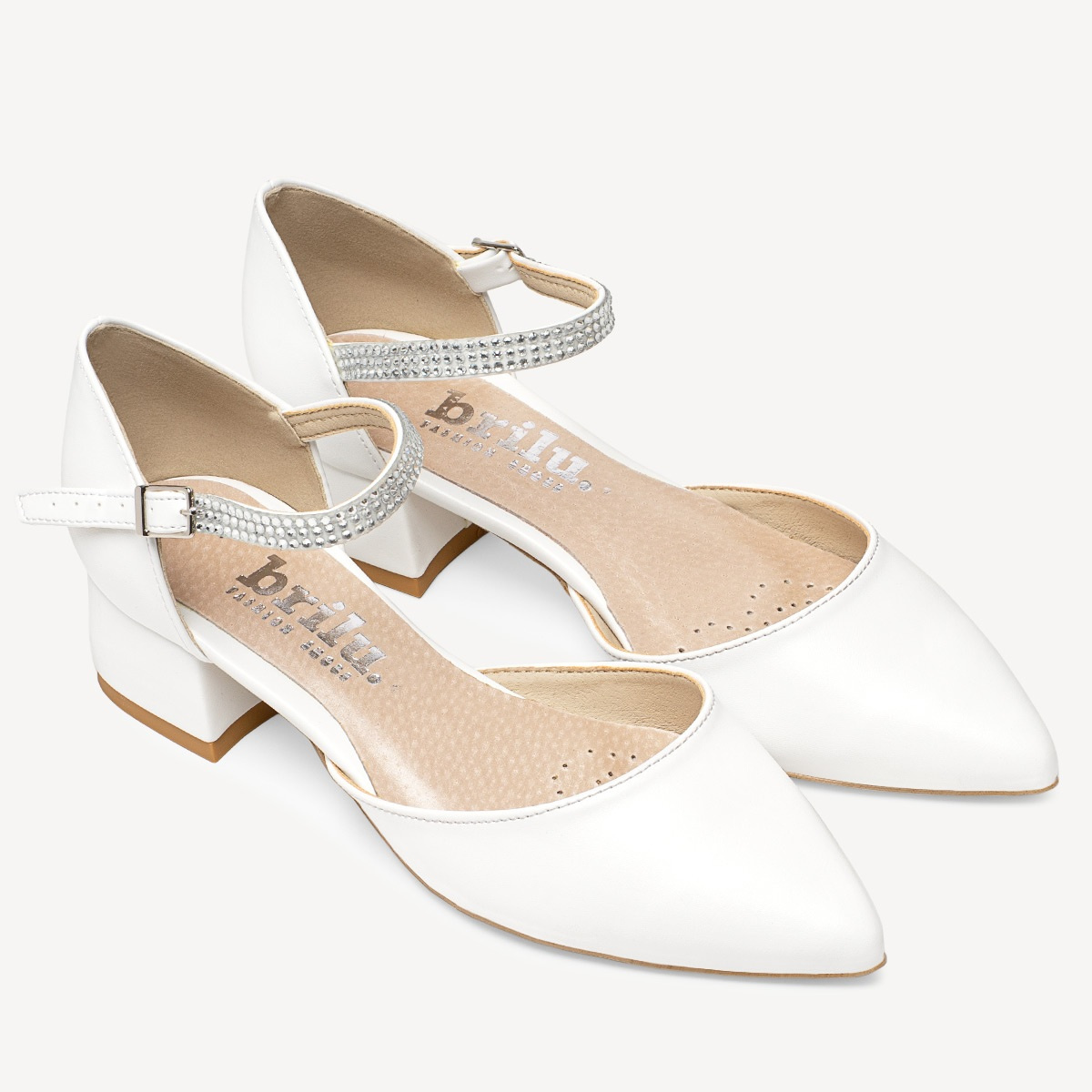Ślubne czółenka z cyrkoniowym paskiem Estella białe