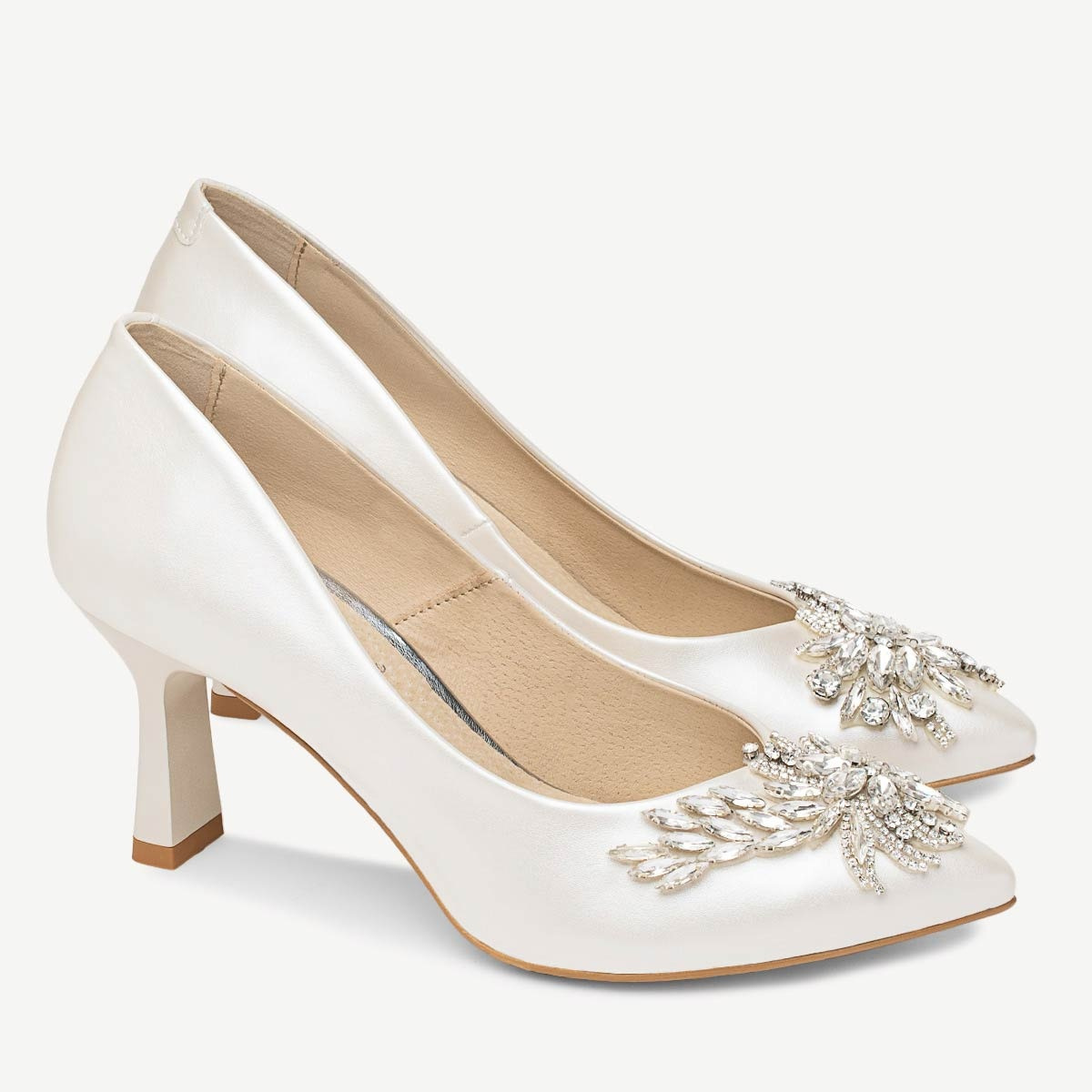 Ślubne perłowe szpilki z kryształową ozdobą Leyla ivory
