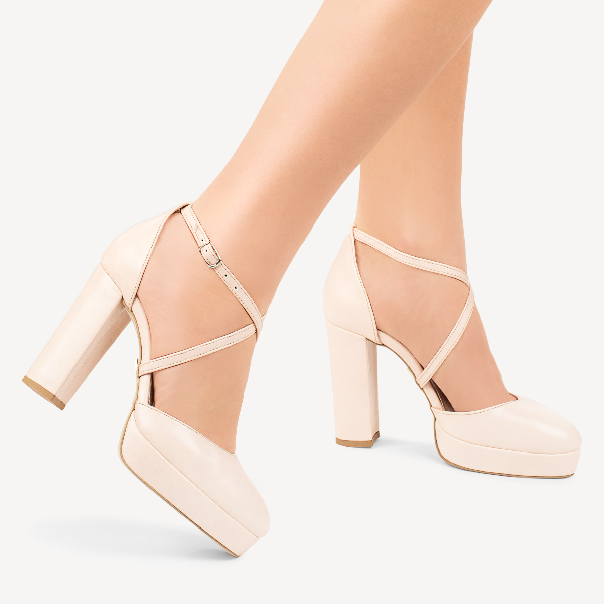 Ślubne czółenka na platformie z paskiem Ellena cieliste ecru