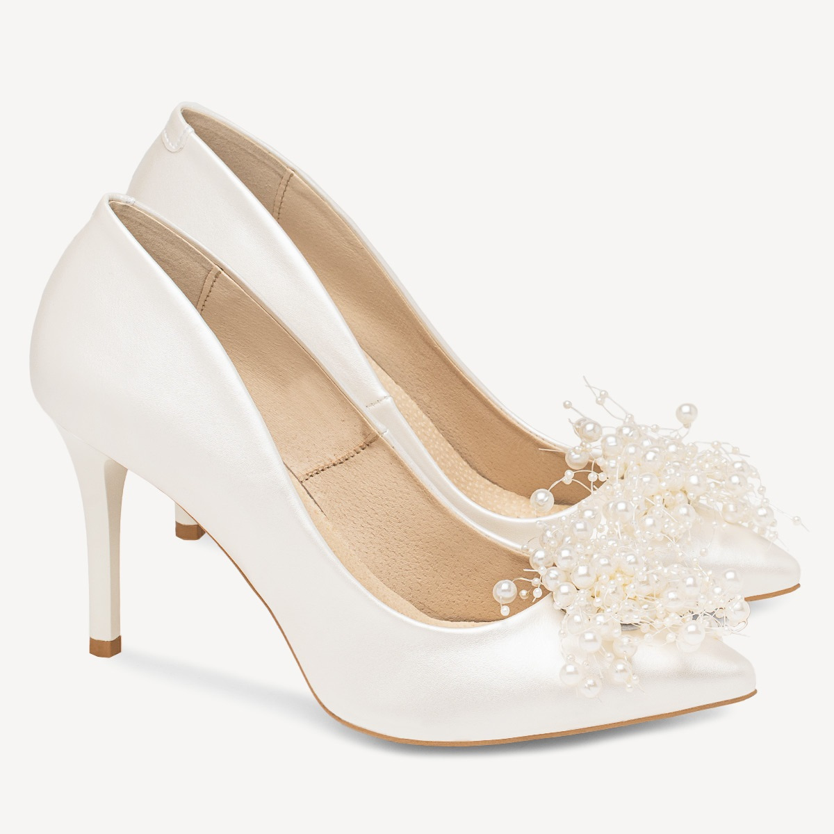 Zaprojektowane i wykonane w Polsce, buty ślubne z ozdobami Kendra zachwycają perełkowym zdobieniem, które dodaje całości lekkości i finezji. Idealne zarówno do minimalistycznej, romantycznej sukni ślubnej, jak i do nowoczesnych stylizacji. Wysokie perłowe szpilki Kendra będą doskonałym dodatkiem, który podkreśli indywidualny styl każdej panny młodej.