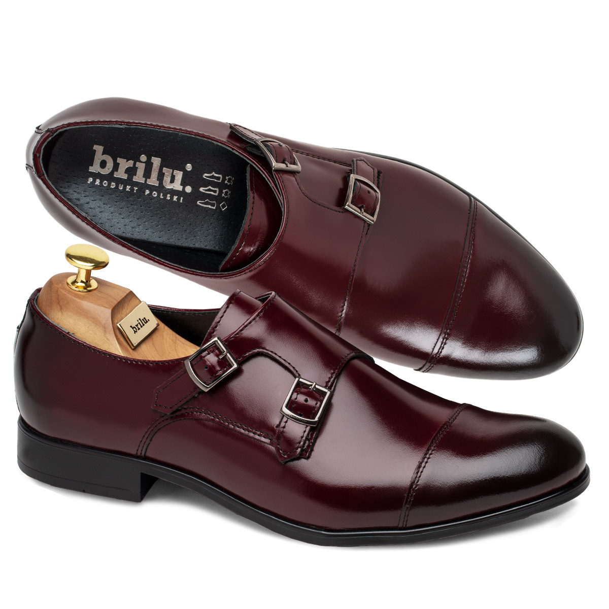 Skórzane półbuty wizytowe monki Feniks bordowe