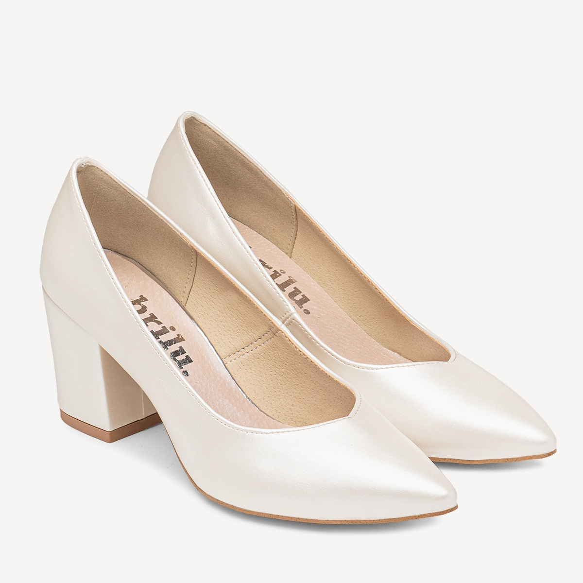 Ślubne perłowe klasyczne czółenka na słupku Emmy ivory