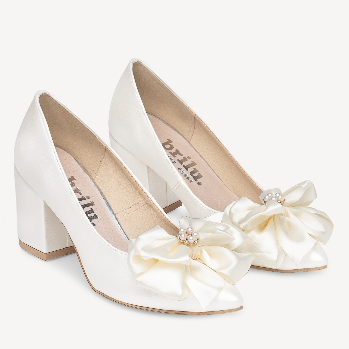 Ślubne perłowe czółenka z ozdobną kokardą Candance ivory