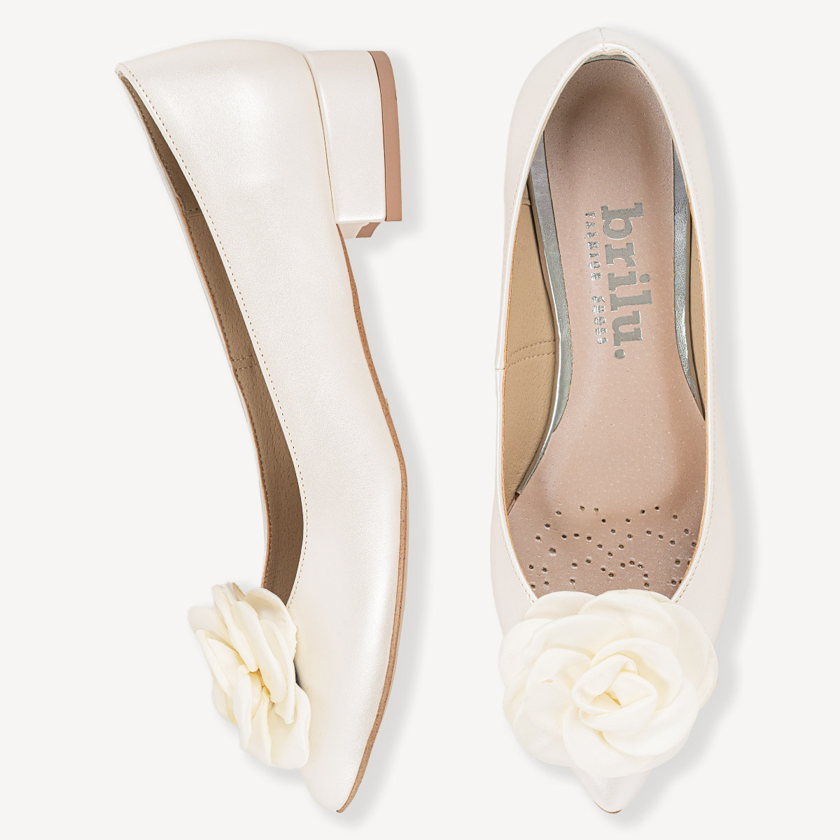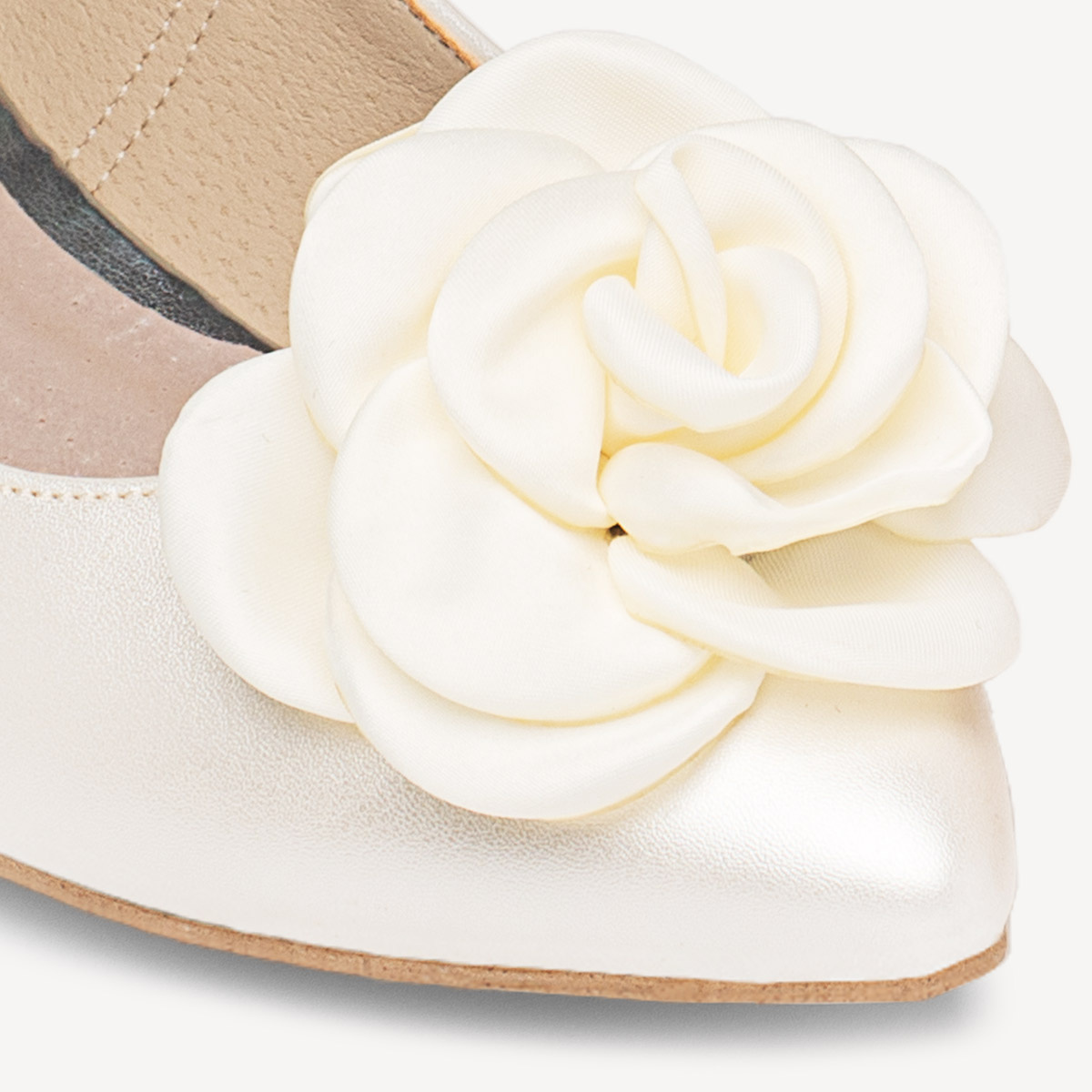Ślubne perłowe balerinki z kwiatową ozdobą Bluebell ivory