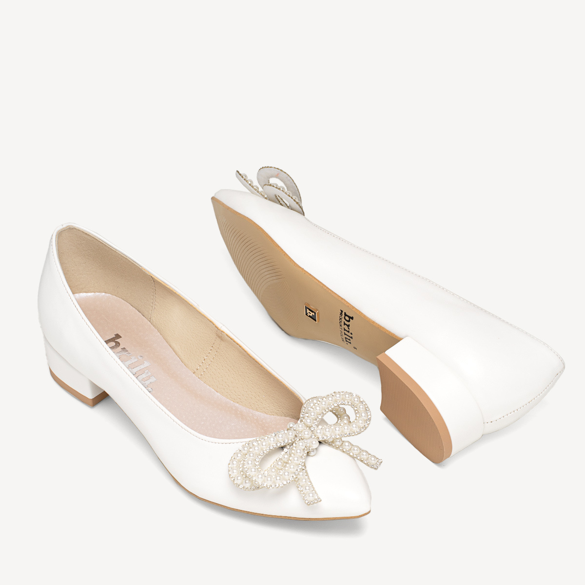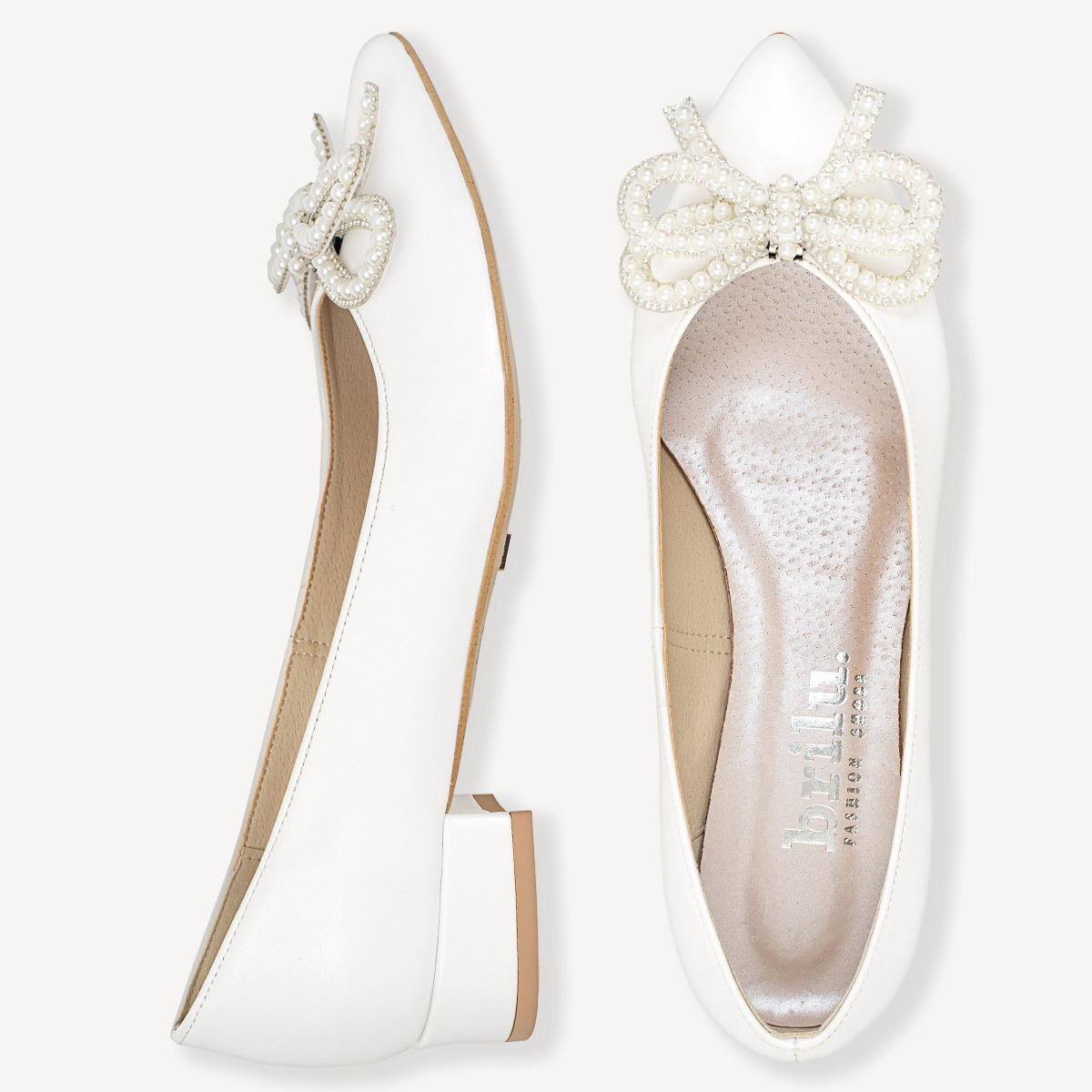 Ślubne balerinki z ozdobną kokardą Solena białe