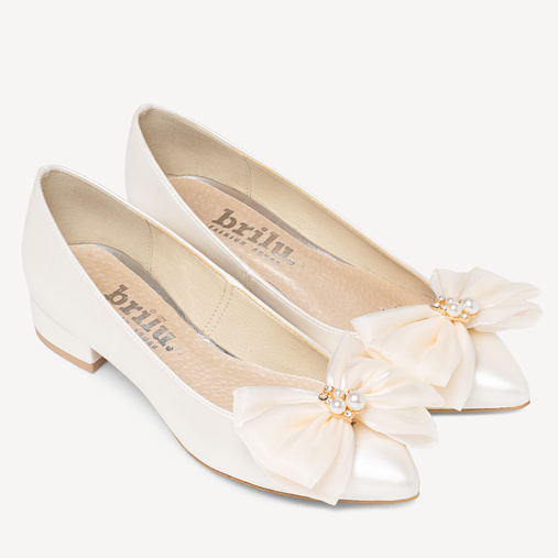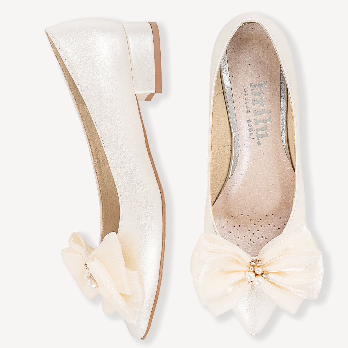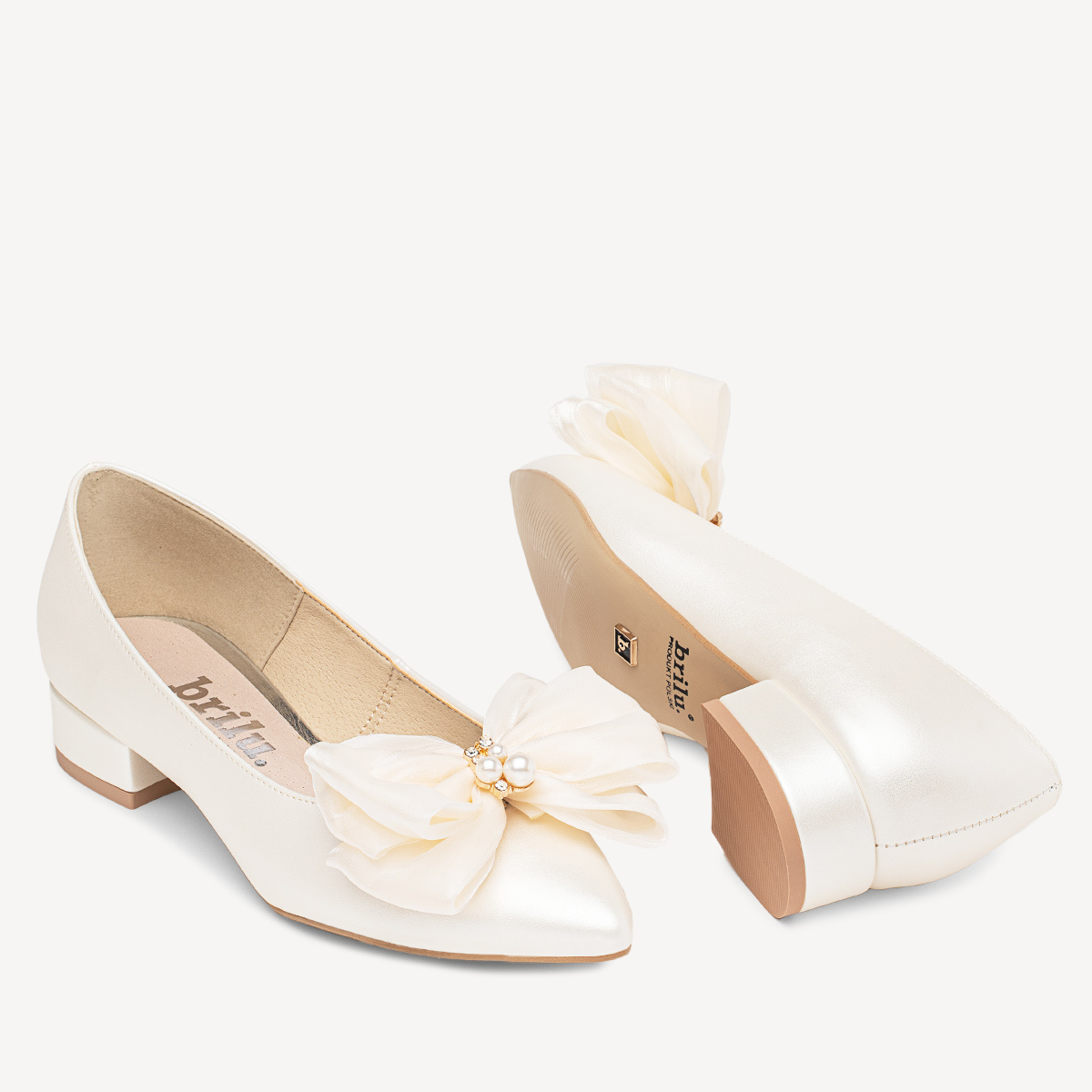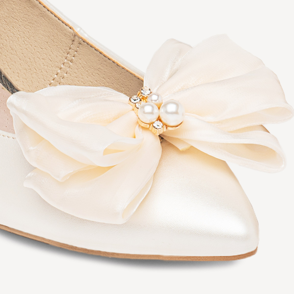 Ślubne perłowe balerinki z ozdobną kokardą Gracia ivory