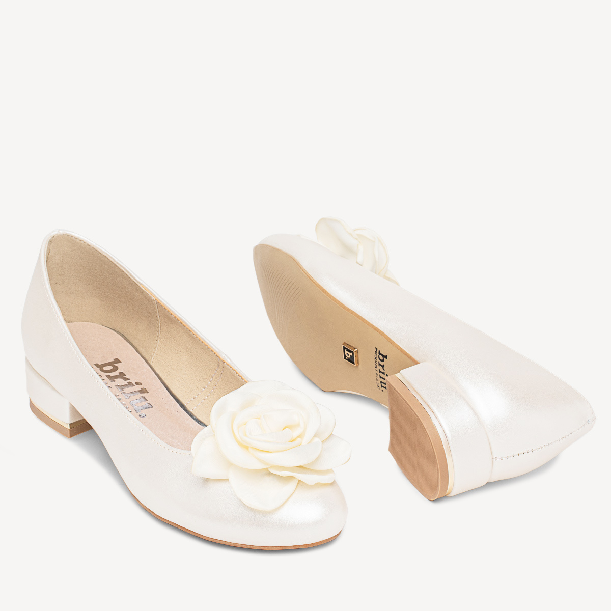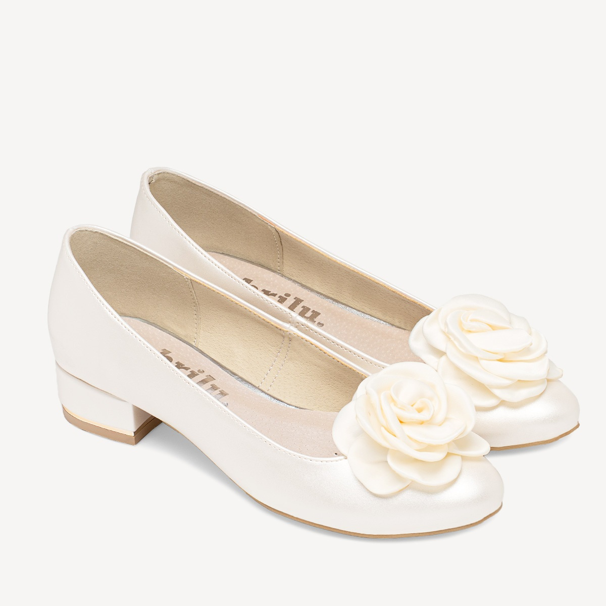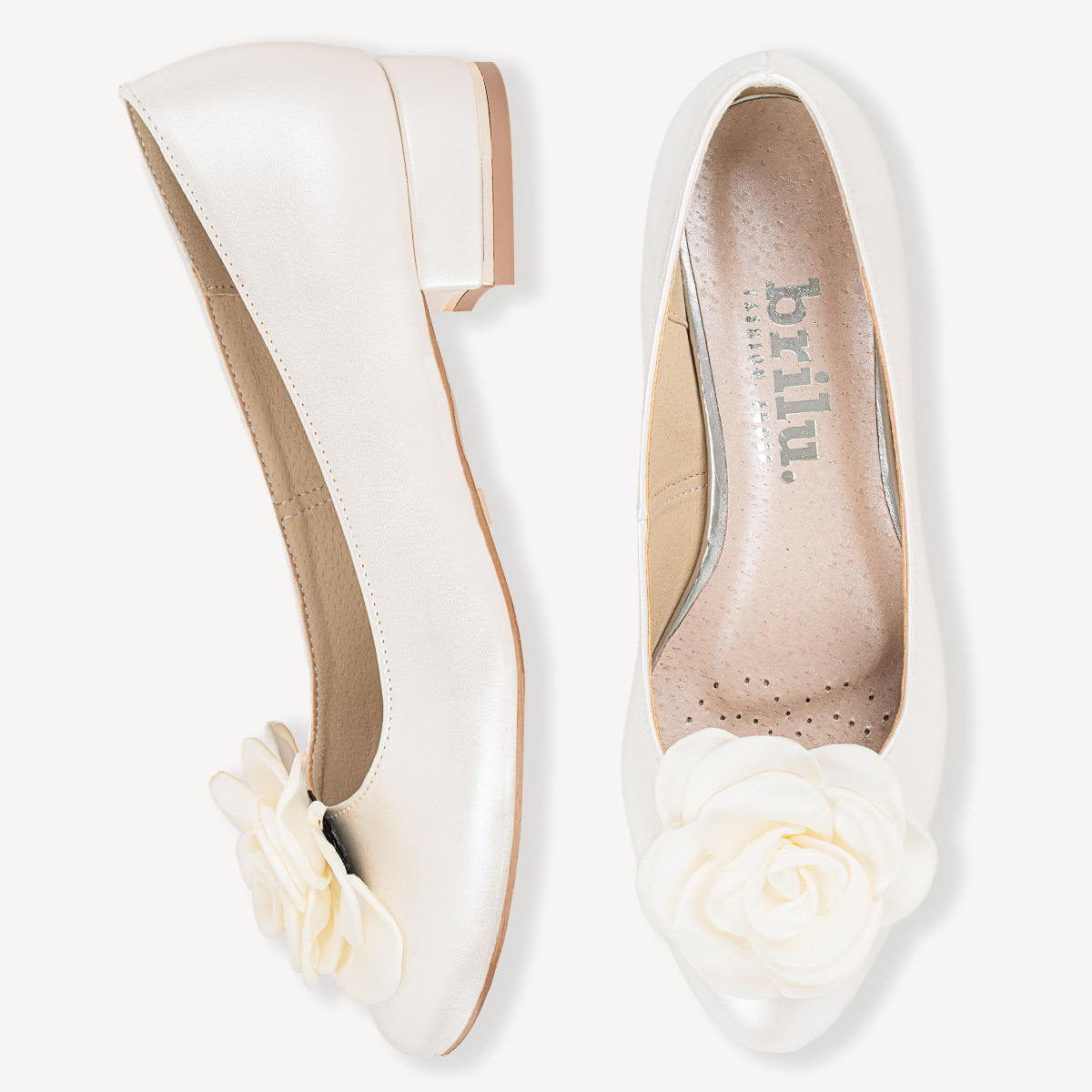 Ślubne perłowe balerinki z kwiatową ozdobą Verona ivory