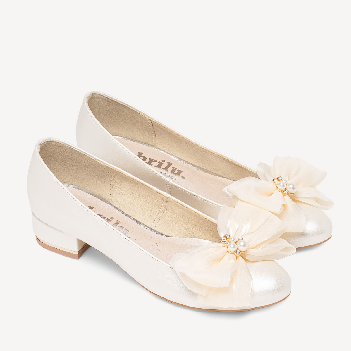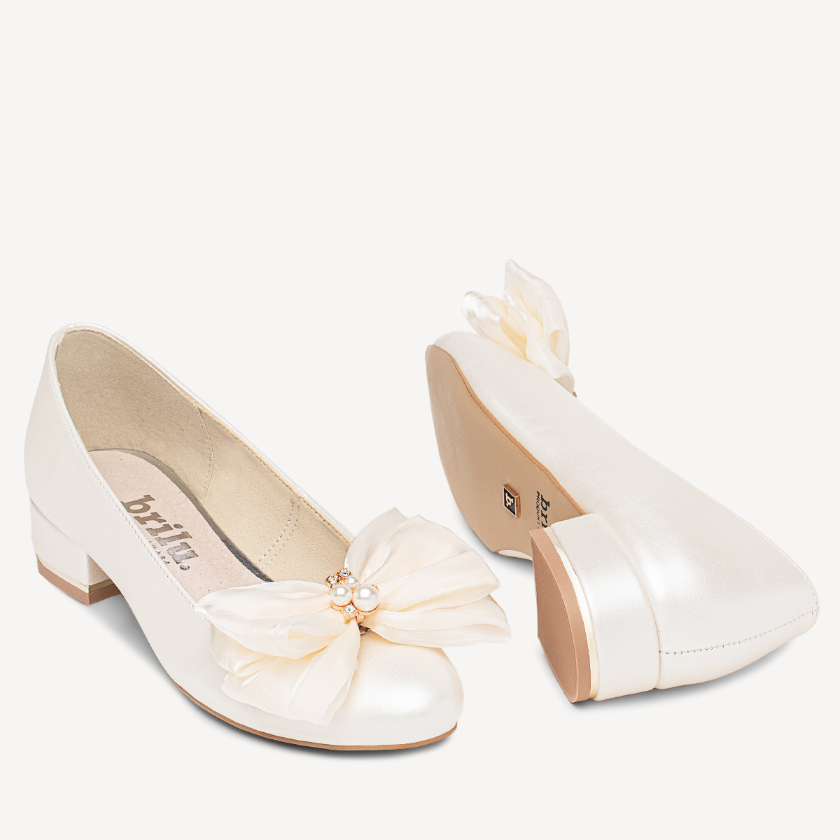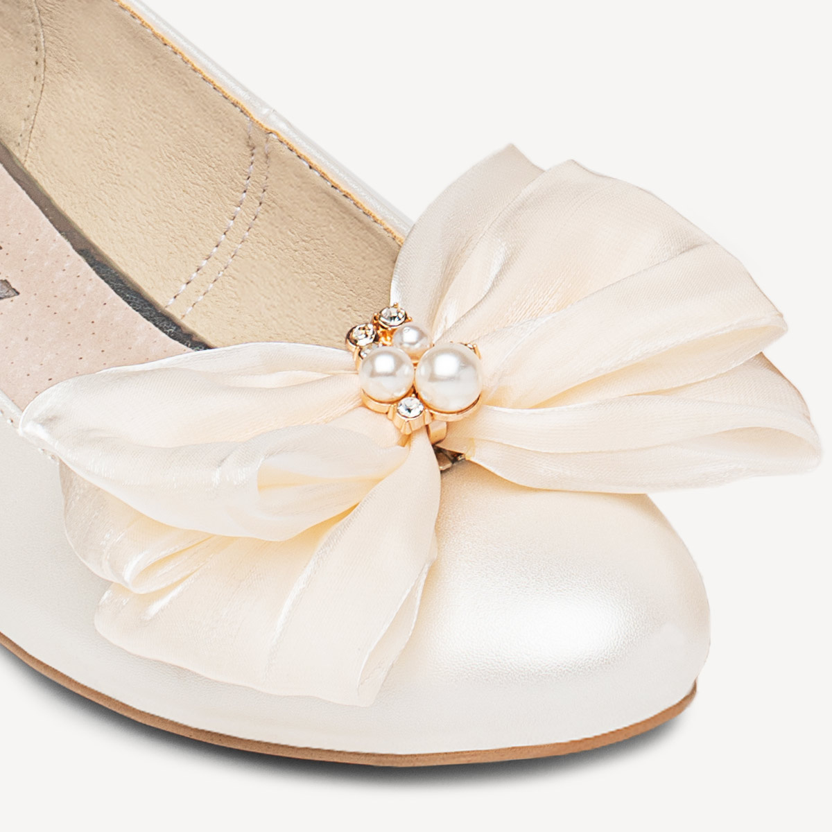 Ślubne perłowe balerinki z ozdobną kokardą Lucy ivory