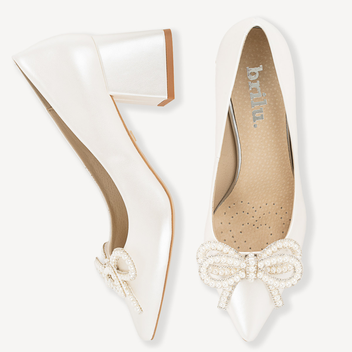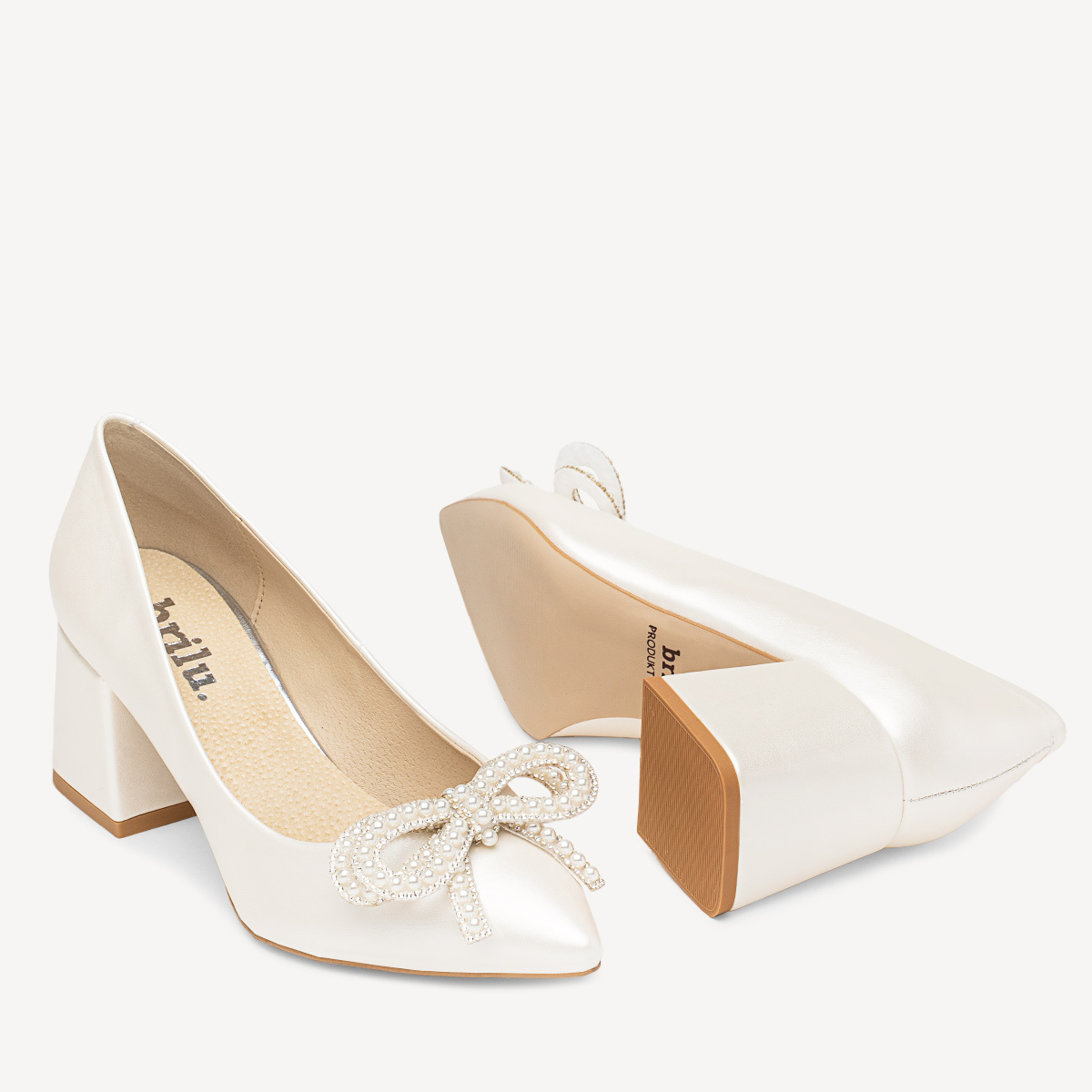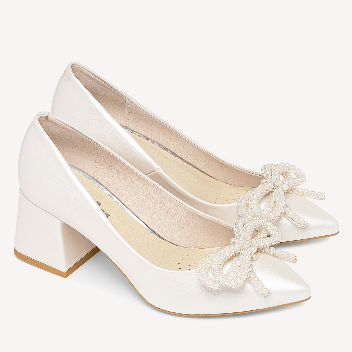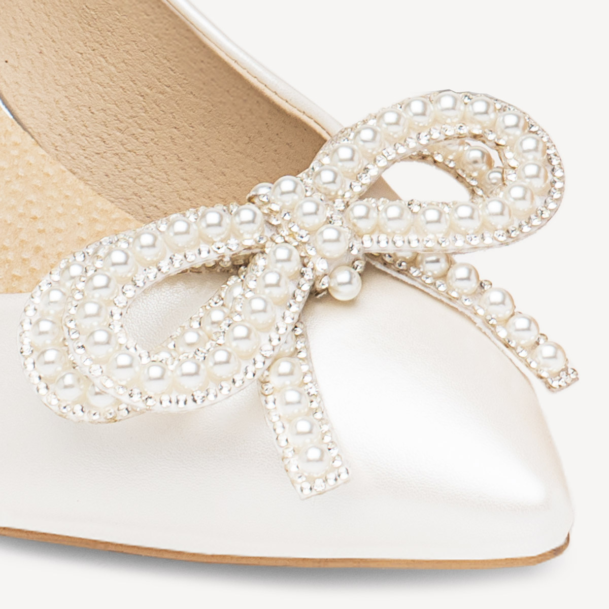 Ślubne perłowe czółenka z ozdobną kokardą Naomi ivory
