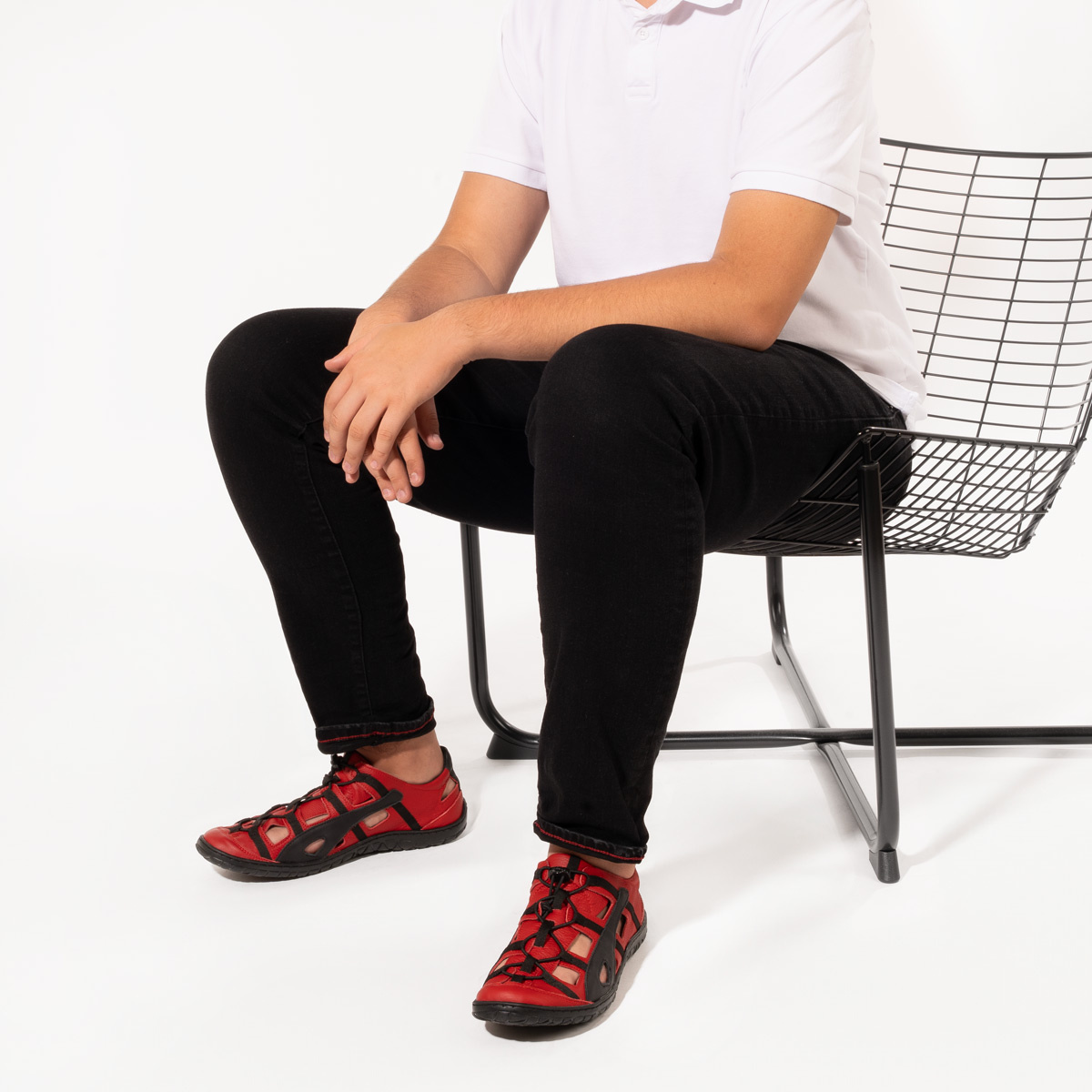 Czerwone sandały trekkingowe Ottis to doskonały wybór dla miłośników aktywnego stylu życia. Zaprojektowane z myślą o pieszych wędrówkach, przejażdżkach rowerowych i wielu innych formach aktywności na świeżym powietrzu. Męskie buty na rower Ottis zostały zaprojektowane i wykonane w Polsce z wysokiej jakości skóry naturalnej.