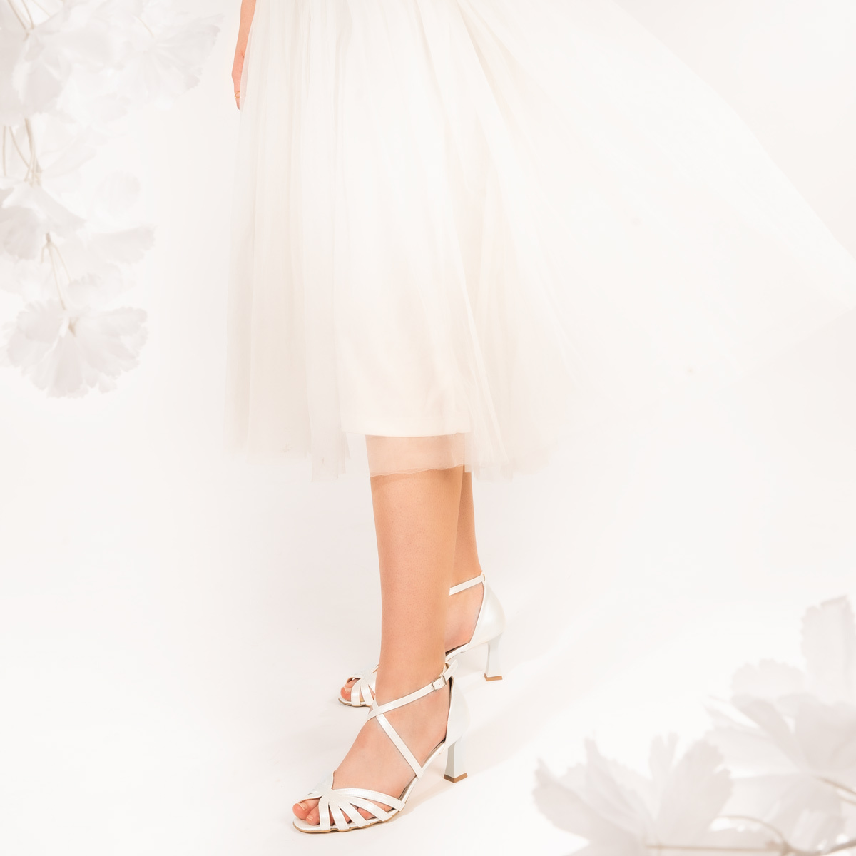 Ślubne perłowe sandały na szpilce Azurra ivory