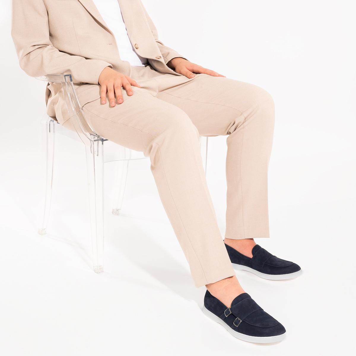 Loafersy zamszowe Logan w kolorze granatowym z modnym akcentem w postaci kontrastującej, białej podeszwy sprawią, że Twoje stylizacje nabiorą lekkości. Głęboki odcień granatu doskonale sprawdzi się zarówno na co dzień do pracy, jak i w bardziej eleganckich, smart-casualowych zestawach, np. z chinosami, marynarką lub koszulą.