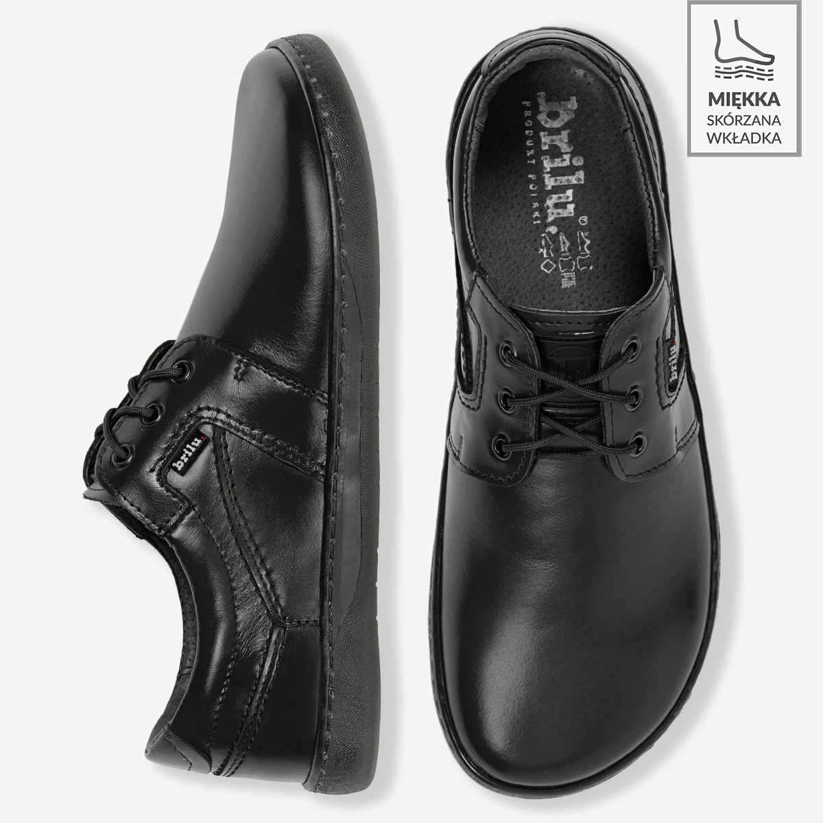 Męskie buty skórzane barefoot to synonim naturalnego komfortu i swobody na każdym kroku. Zaprojektowane i wyprodukowane w Polsce z wysokogatunkowej skóry naturalnej licowej - są wygodne i funkcjonalne. Czarne buty męskie barefoot charakteryzuje się szerokim noskiem, który daje palcom przestrzeń do swobodnego ułożenia, co zapobiega nieprzyjemnym uciskom. Dodatkowo, skórzana wkładka jeszcze bardziej podnosi satysfakcję z użytkowania.