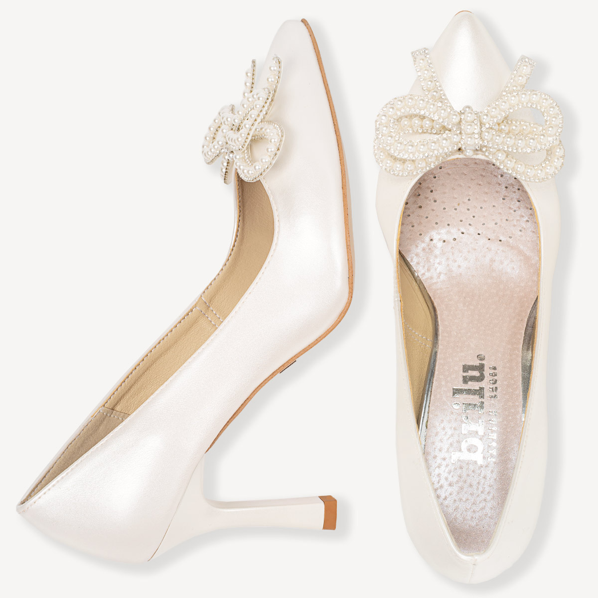 Ślubne perłowe szpilki z ozdobną kokardą Paradise ivory
