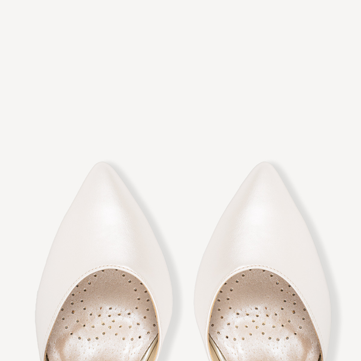 Szpilki z paskami Melody to wyjątkowe szpilki do ślubu, które łączą w sobie elegancję i wygodę. Wykonane z wysokogatunkowej skóry syntetycznej, zostały wyposażone w miękką skórzaną wkładkę w systemie Doubly Comfy, co sprawia, że nawet długie godziny uroczystości nie będą powodować uczucia dyskomfortu. Nosek w szpic i stabilna, gruba szpilka 7,5 cm dodają sylwetce smukłości i optycznie wydłużają nogi. Ponadto, krzyżujące się paski nie tylko podkreślają delikatny charakter obuwia, ale również zapewniają lepsze dopasowanie, dzięki czemu model ten świetnie sprawdzi się jako szpilki dla panny młodej lub szpilki dla świadkowej