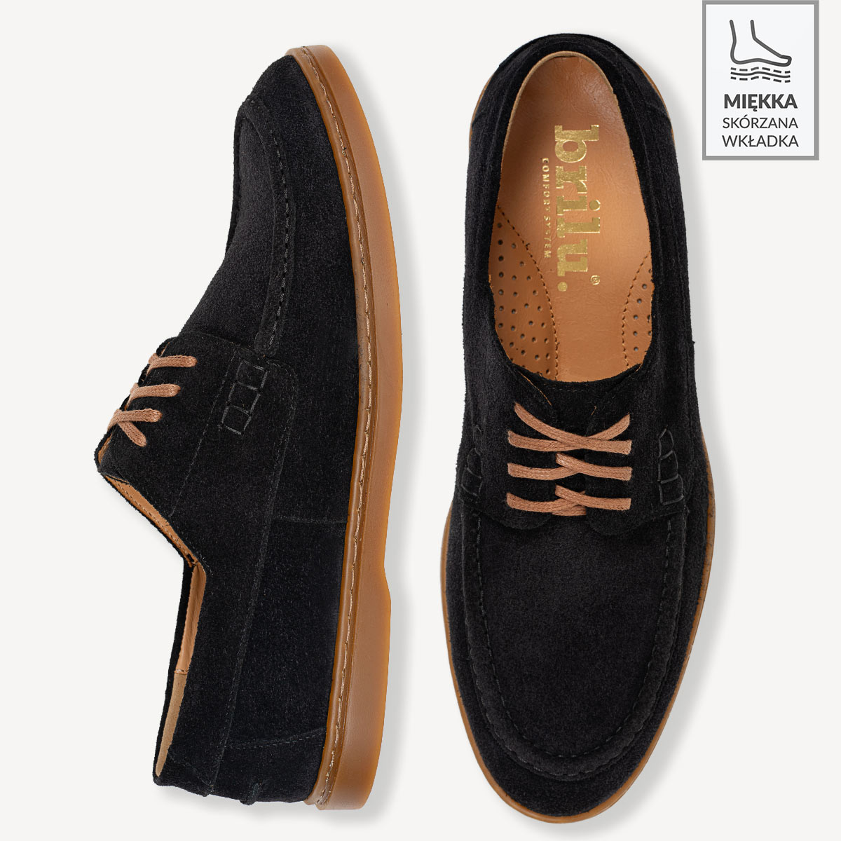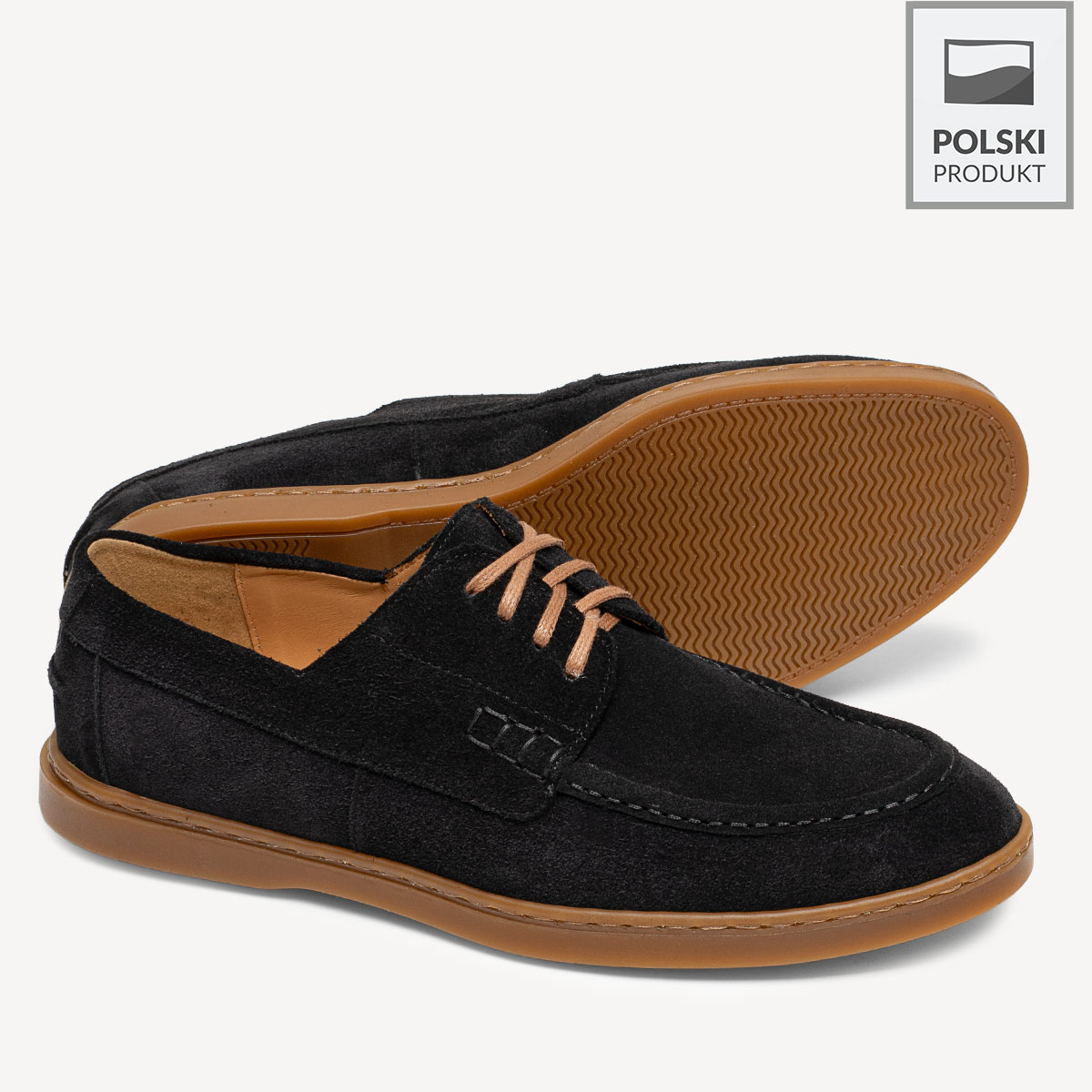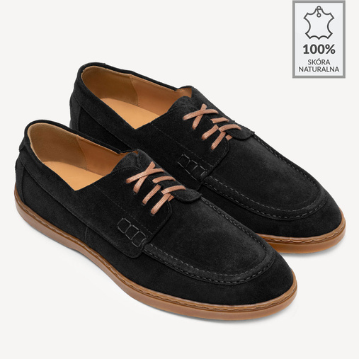 Skórzane zamszowe mokasyny sznurowane Knox czarne